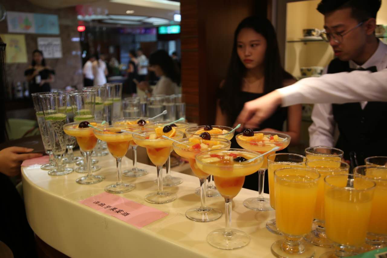 本次毕业成果展共设有一个舞台和五个区域,分别是礼仪区、烘焙区、饮料区、博弈区和食品制备碗碟回收区。展会伊始,每位同学身着整齐的黑色礼服,面带灿烂的笑容,邀请师长们参观成果展现场。接着,铭传大学观光学院院长翁振益教授和我院党委书记叶萍先后上台致辞,回顾了同学们在台湾的学习和生活,也表达了对同学们未来的殷切希望和诚挚祝愿。同学们随后在舞台上进行了歌舞、相声、小品等精彩表演,现场热烈的气氛进入高潮。毕业成果展出后,师长们与同学们共同合影留念,同学们还为师长们送上了亲手制作的伴手礼。