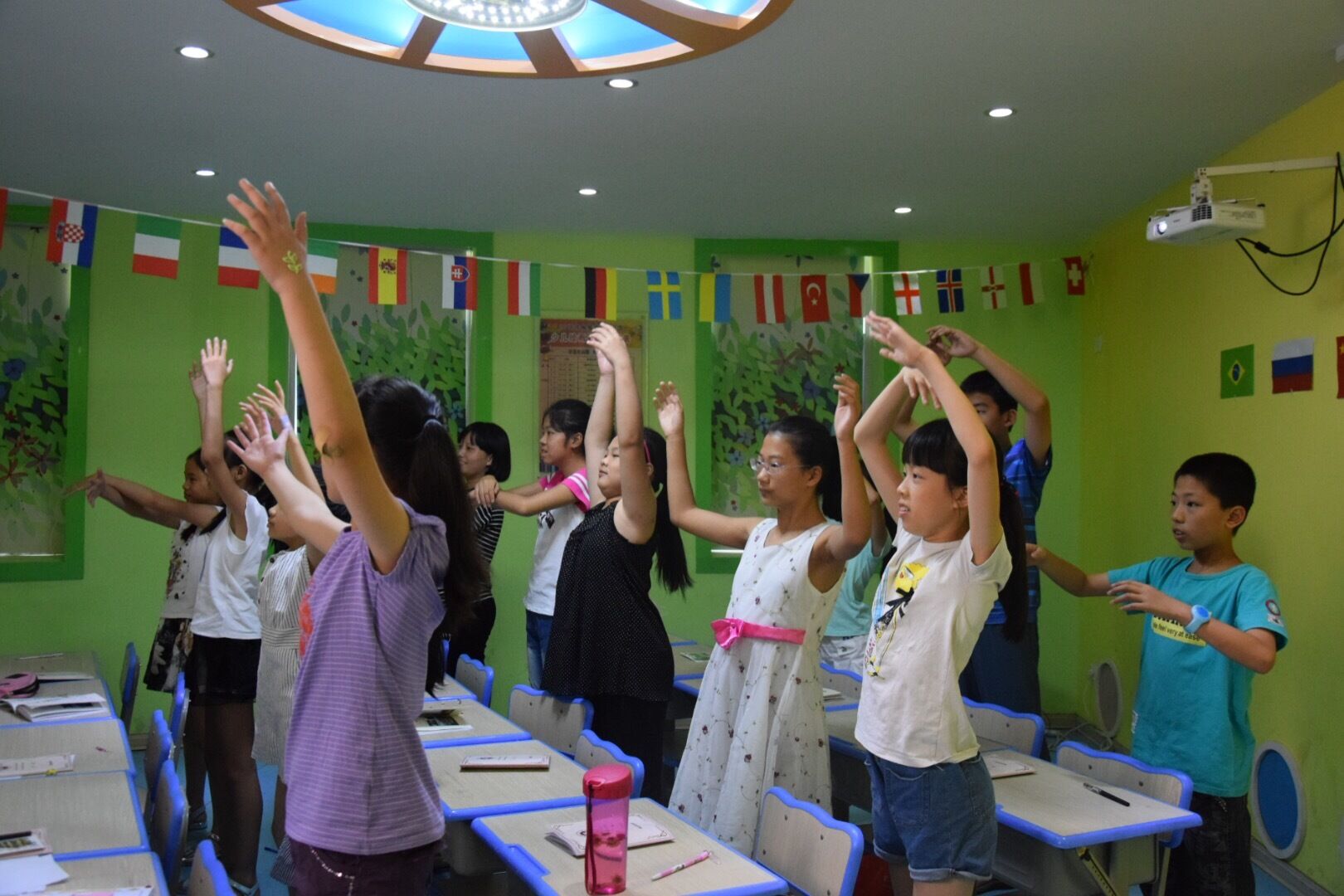 据悉,本次夏令营活动为期两天,课程内容包括金砖五国、陆上及海上丝绸之路内容介绍、舌尖上的丝绸之路、英文歌曲学唱、印度舞学习,金砖五国国旗、巴西手环、俄罗斯套娃制作等。夏令营开始前,实践队员便开始紧锣密鼓、有条不紊地进行活动的前期准备:从课堂试讲、课堂内容的反复调整到提前到活动教室踩点、装扮教室,每个环节都充满着实践队员的细致与用心。“因为我们的授课对象是小学生,所以为了让教材看起来更简单易懂,我们一直在修改调整上课内容。”实践队员陈同学说道。