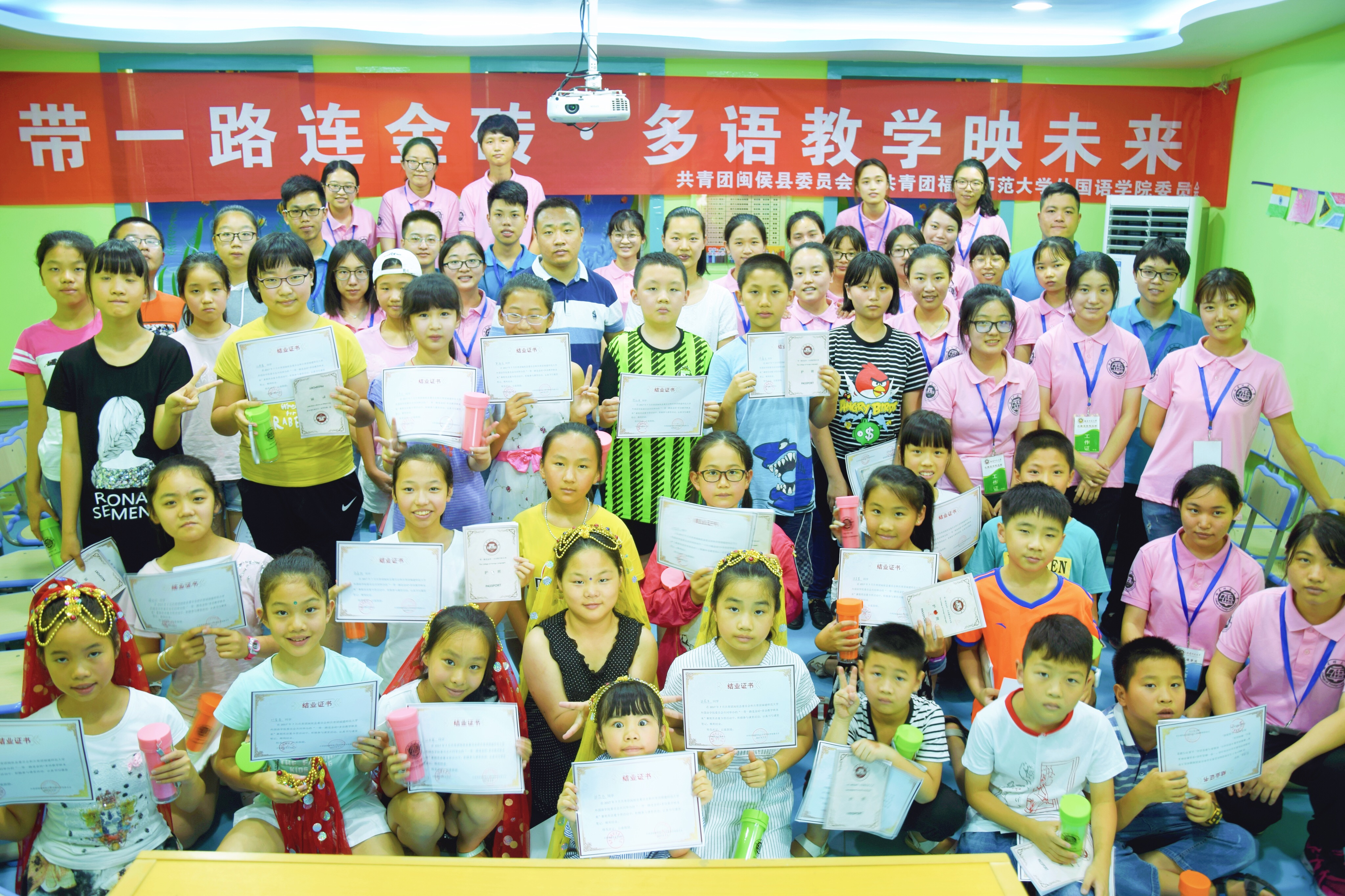 7月10日,闽侯县团委和我校外国语学院团委联合主办的“一带一路连金砖,多语教学映未来”暑期夏令营活动在闽侯县青少年宫拉开帷幕。闽侯县团委副书记江文南、福建师范大学外国语学院团委书记谢晶出席该活动的开营仪式。