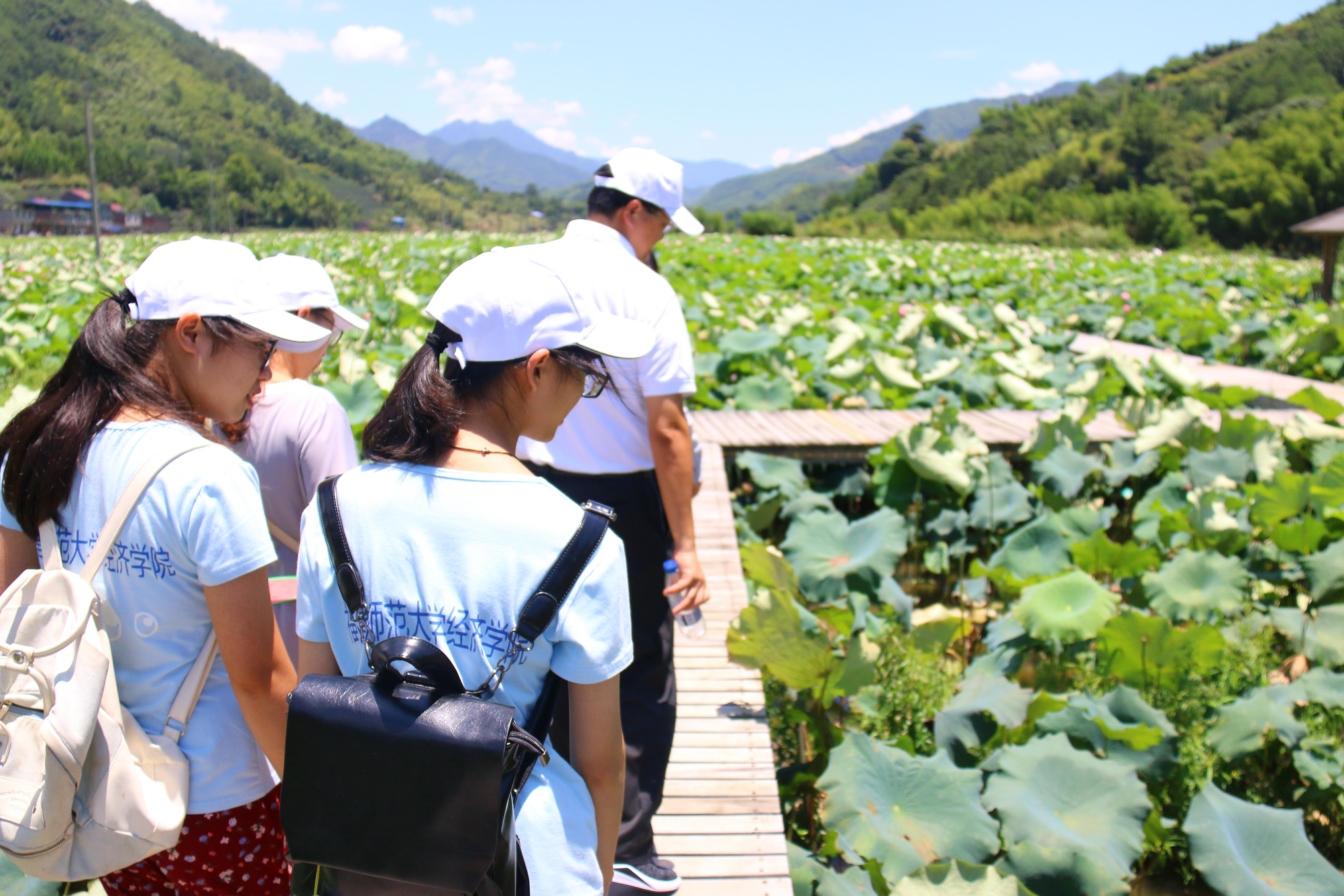随后,实践队来到政和县外屯乡洋屯村参观十里荷塘。在参观中,成员们了解到,针对洋屯村莲子合作社资金不足、产业难以扩大这一难题,廖书记提出成立银行与政府相结合的“扶贫小额信贷助推协会”,专门助力农民贷款,并在全省率先推出“三农小额担保贷款”,顺利解决了莲子产业发展资金紧缺的困扰,极大地扩大了莲子的种植规模。当得知如此举措不仅在我省具有创新意义,在全国亦是遥遥领先时,队员们无不感叹廖书记的智慧与勇气。