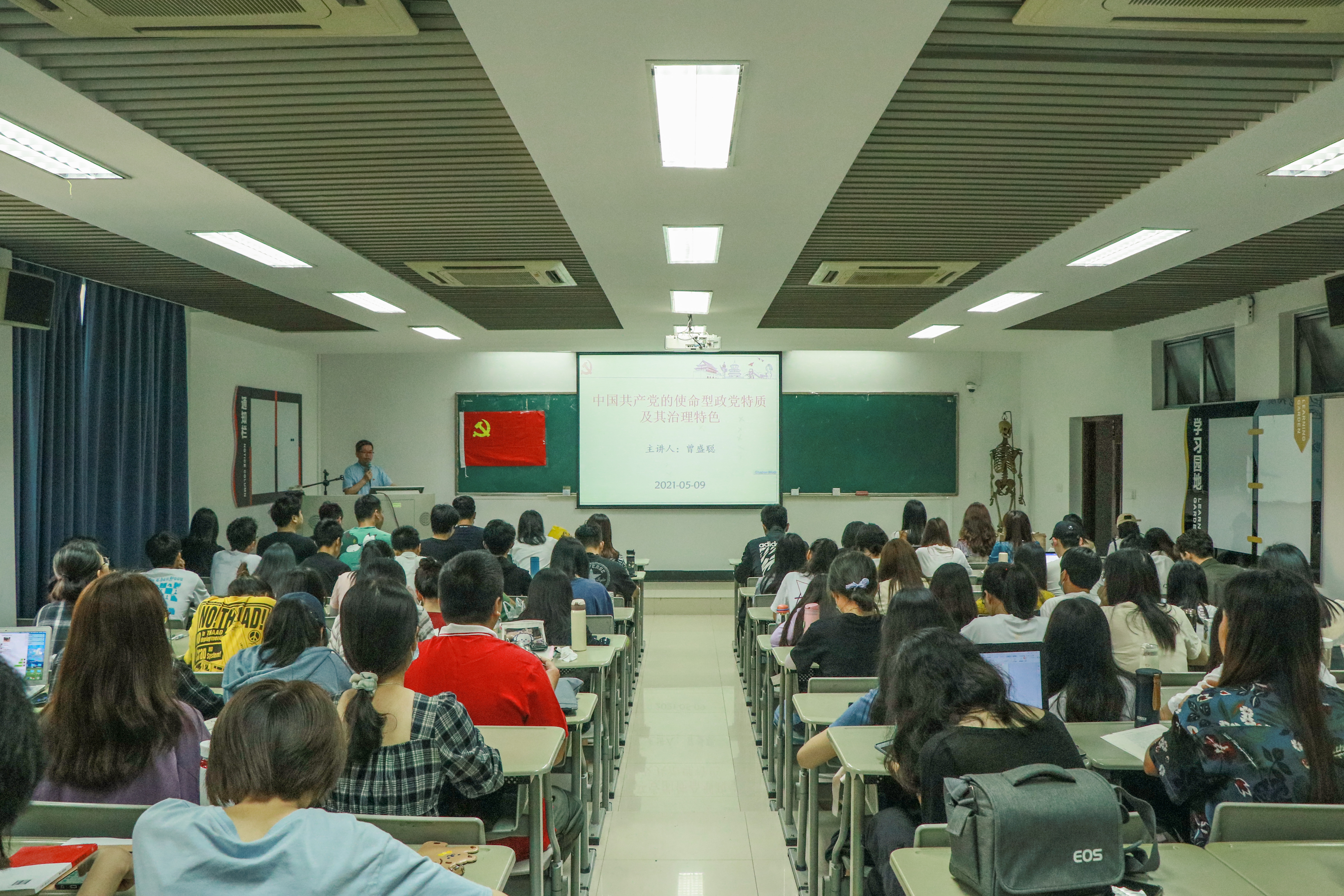 5月9日上午,公共管理学院院长曾盛聪教授在旗山校区基地202教室为学生骨干作《中国共产党的使命型政党特质及其治理特色》专题思政报告。