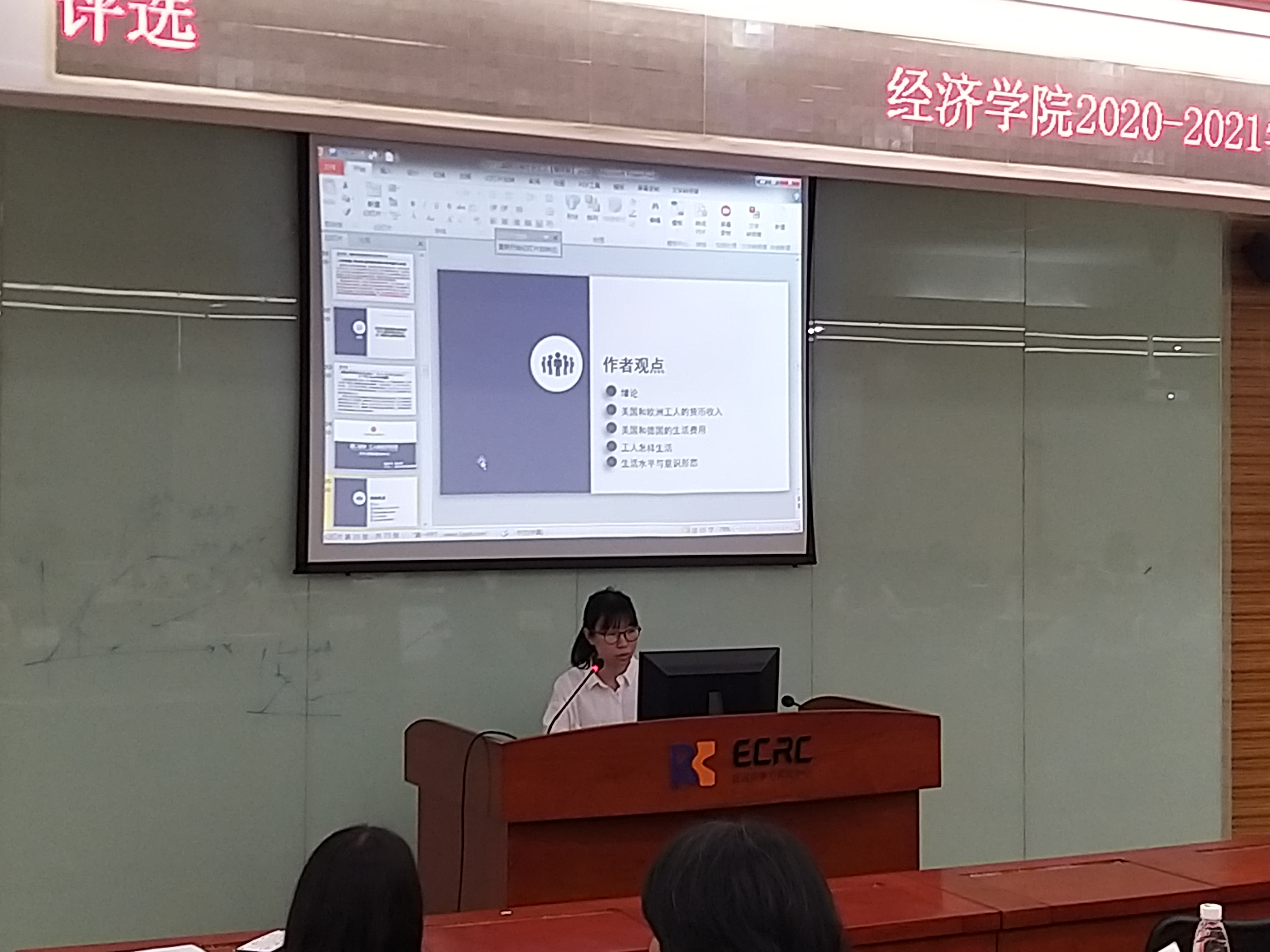 5月12日下午,经济学院在人文楼道德讲堂开展了以“为什么美国没有社会主义——桑巴特‘美国例外论’释析”为主题的读书分享会。本次活动由白华讲师带领2018级读书会成员林嘉雯、陈芷楦和丘雅琪主讲,陈伟雄老师主持,经济学院政治经济学教研组全体成员以及全体读书会成员,共计70余名师生参与其中。