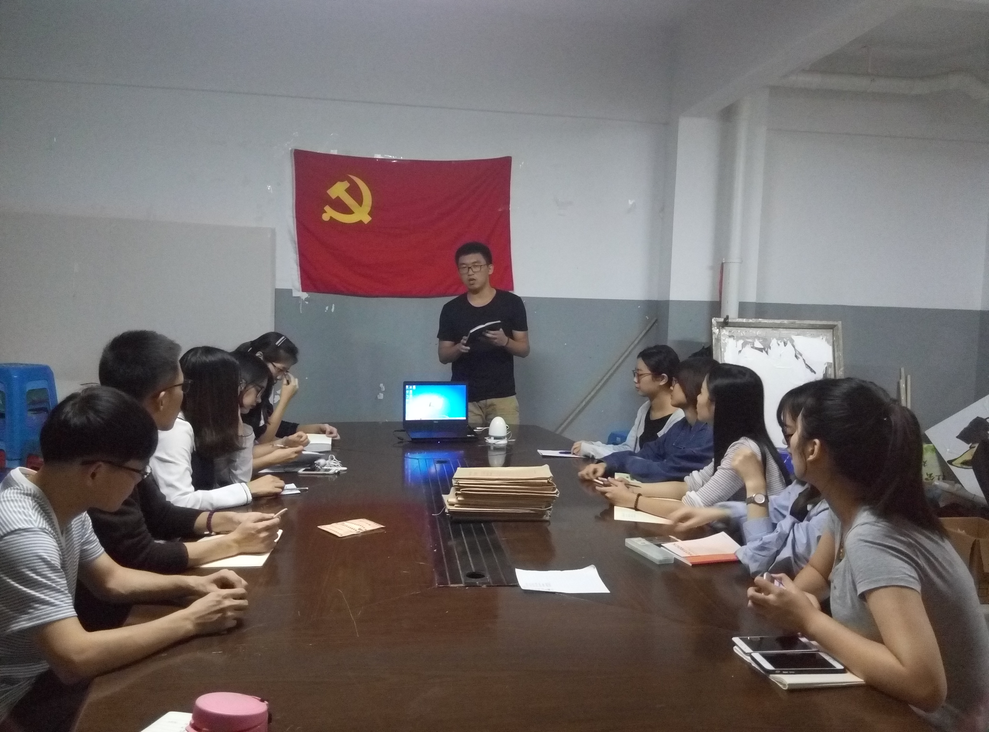 为深入贯彻中共十九大精神,2017年10月18日晚,社会历史学院本科生2014级第一党支部在16号楼活动室召开了关于中国共产党第十九次全国代表大会学习会。会议由丁然同志主持,蔡鑫尧同进行主讲,参与本次学习会的有社会历史学院本科生2014级第一党支部全体党员同志。