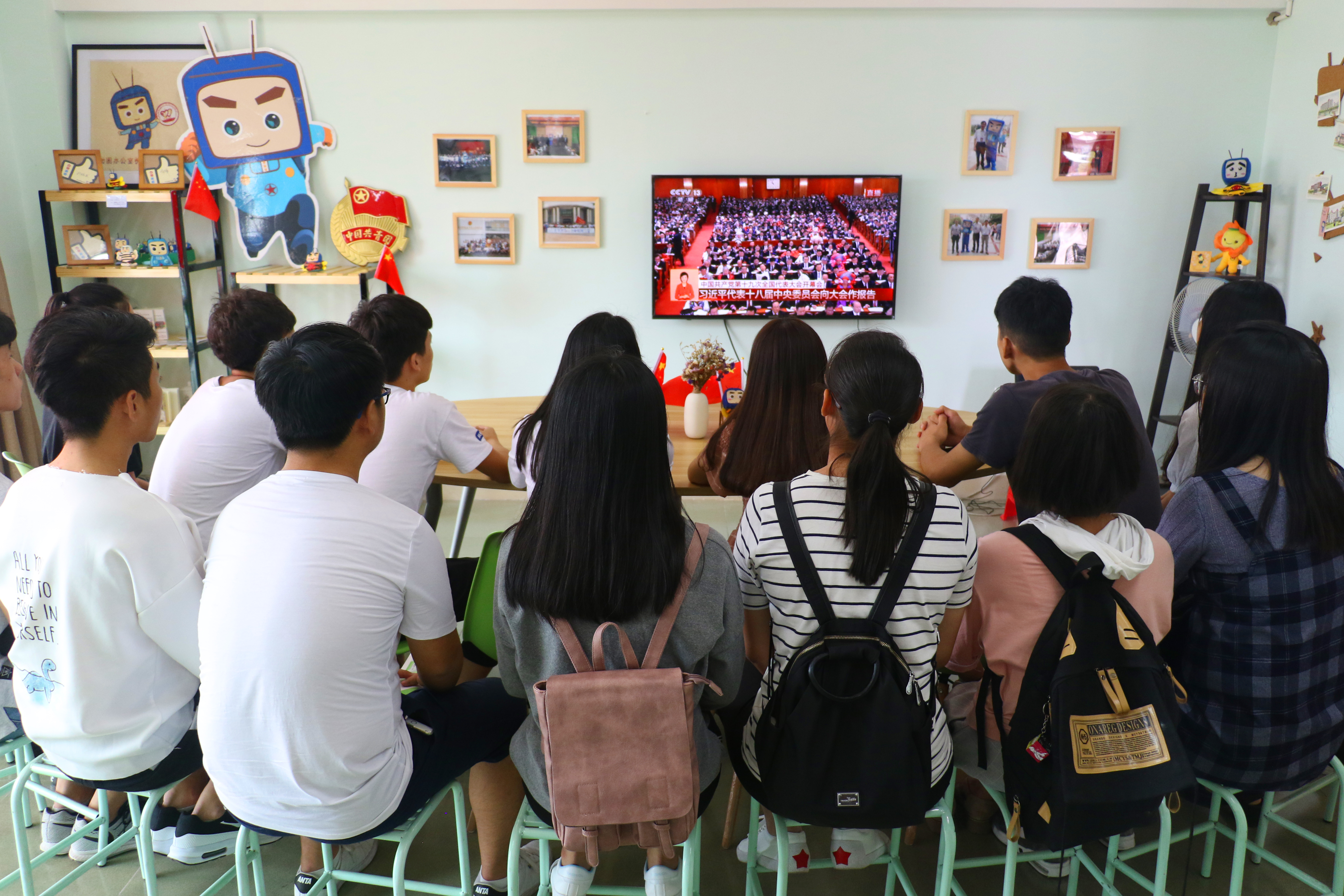 10月18日,是一个举世瞩目的日子,中国共产党第十九次全国代表大会在北京隆重召开。上午9时,福建师范大学闽南科技学院团委在新媒体工作室设立主会场,组织青年师生近40人,认真收看和收听了大会开幕式和习近平同志在大会上所作的报告。
