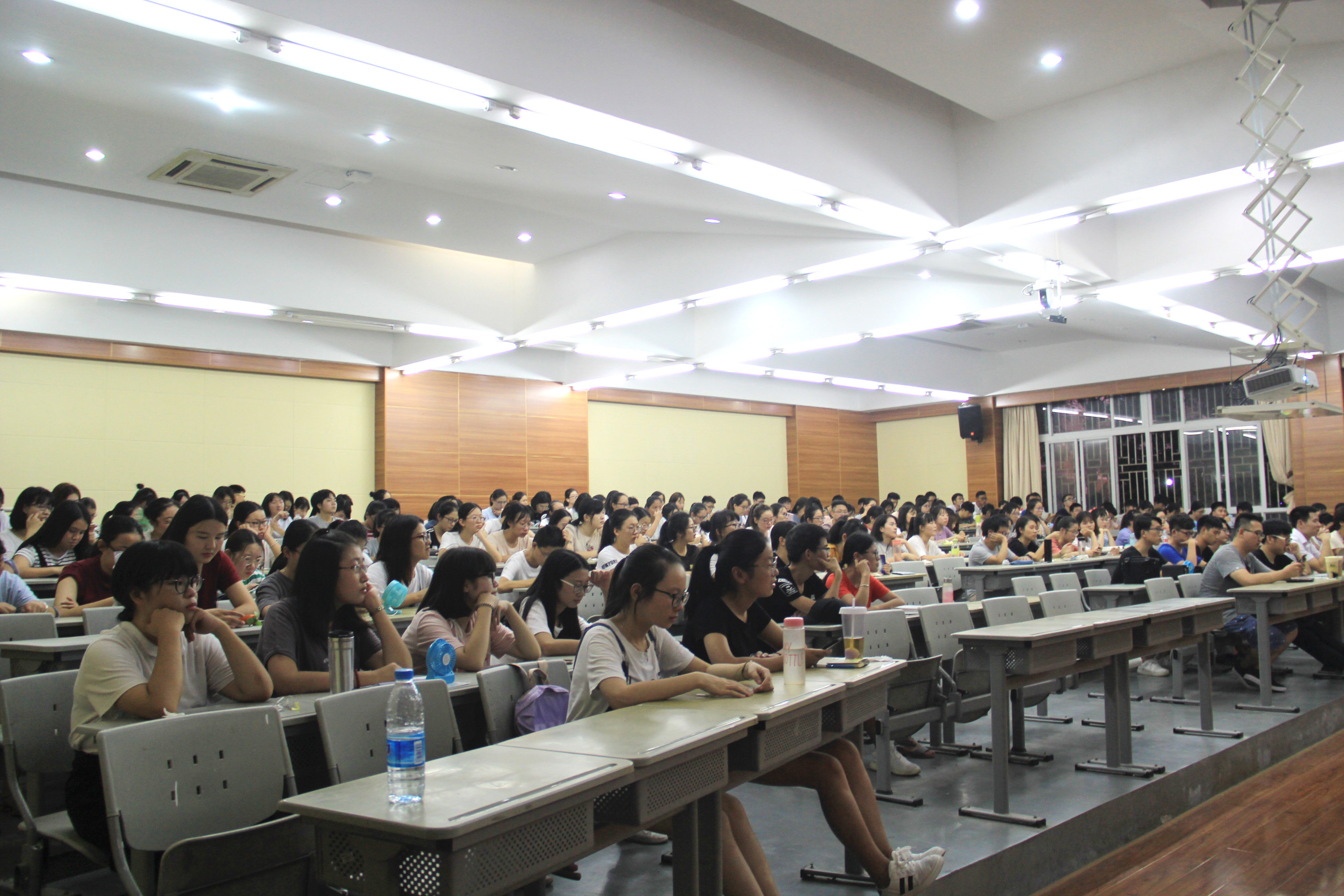 2017年9月24日18时,福建师范大学法学院2016级在模拟法庭开始了一场特殊的课——“开学第一课”,由2016级辅导员梁莹老师主持,邀请了法学院历届毕业生中优秀的校友赵秀芝、周瑞壬、汪伏源、徐学舟学长作为嘉宾,为大家的专业学习与职业规划开展交流座谈。