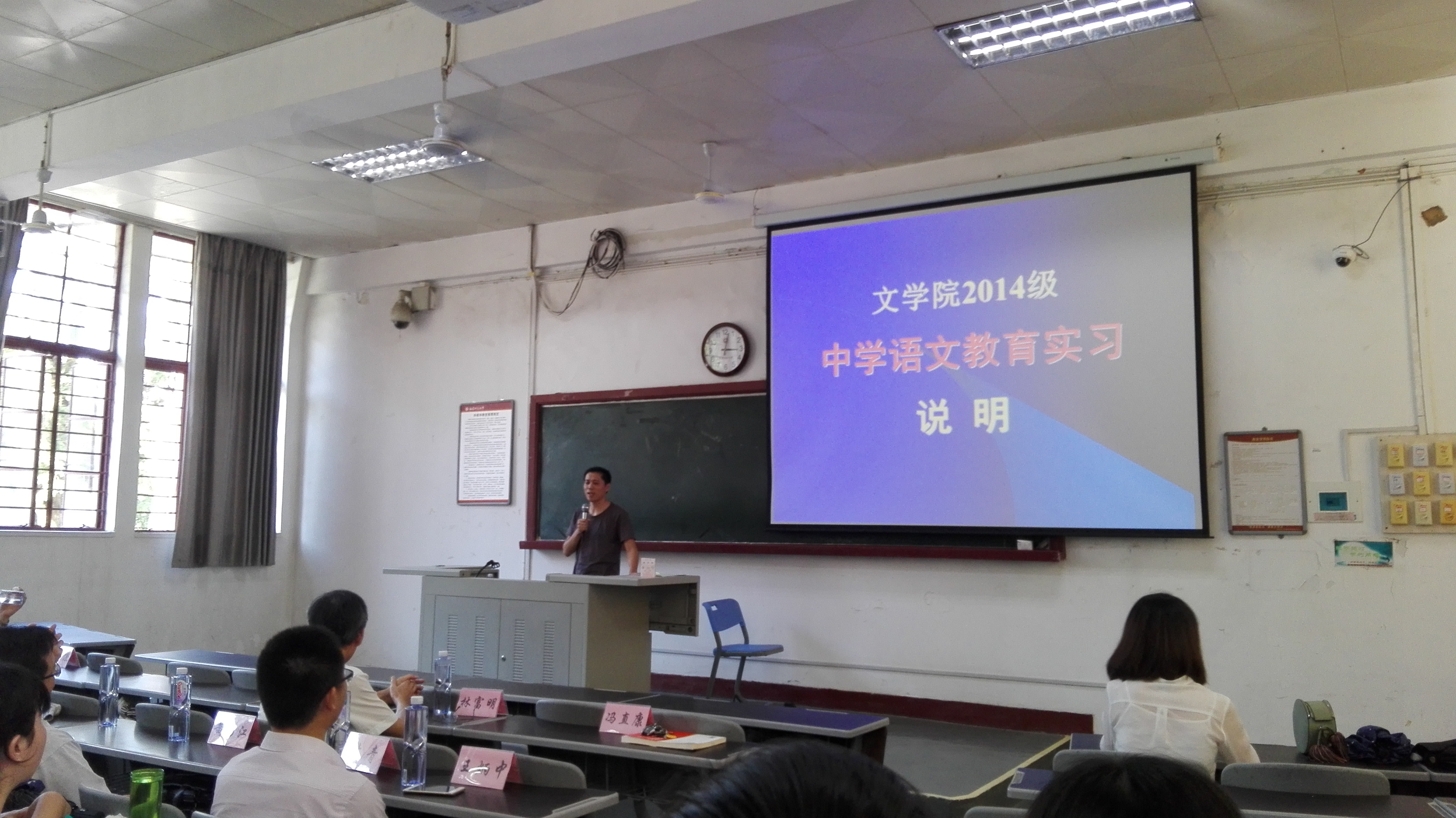 文学院2017年师范生教育实习动员会于9月27日在仓山校区文科楼101召开,文学院党委李彬源副书记,本科生教育实习指导林富明老师和冯直康老师,以及实习带队教师王炳中老师、黄乃江老师、刘心老师、龚忠友老师、叶青老师、李勤老师等莅临现场与同学亲切交流。