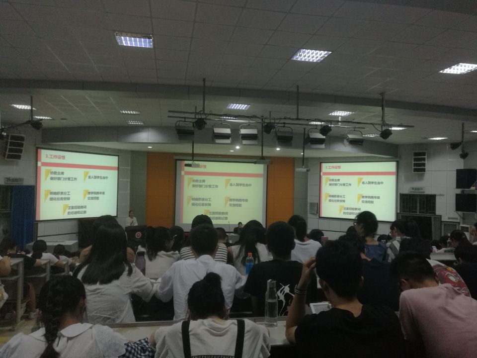 2017年9月在外院多功能厅,展开了主题为“开学第一课”的教育活动。活动大致分为三部分,分别由林莉莉老师、薛曦老师和谢珊珊老师对2016级英语专业学生、2016级日语专业学生以及2016级英语师范专业学生进行“开学第一课”的教育讲座活动。