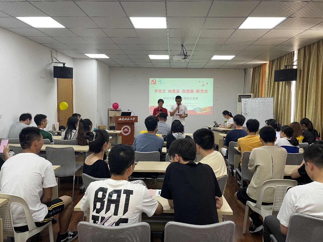 为热烈庆祝中国共产党百年华诞,重温中国共产党百年伟大历程, 5月15日下午2时,环境科学与工程学院研究生在实验中心二楼多媒体教室举办了以“学党史、知党恩、保党秘、跟党走”为主题的党史和保密知识竞赛。本次活动由江丽华同学和刘鹏辉同学主持,研究生辅导员余雨清和50多名研究生共同参与。
