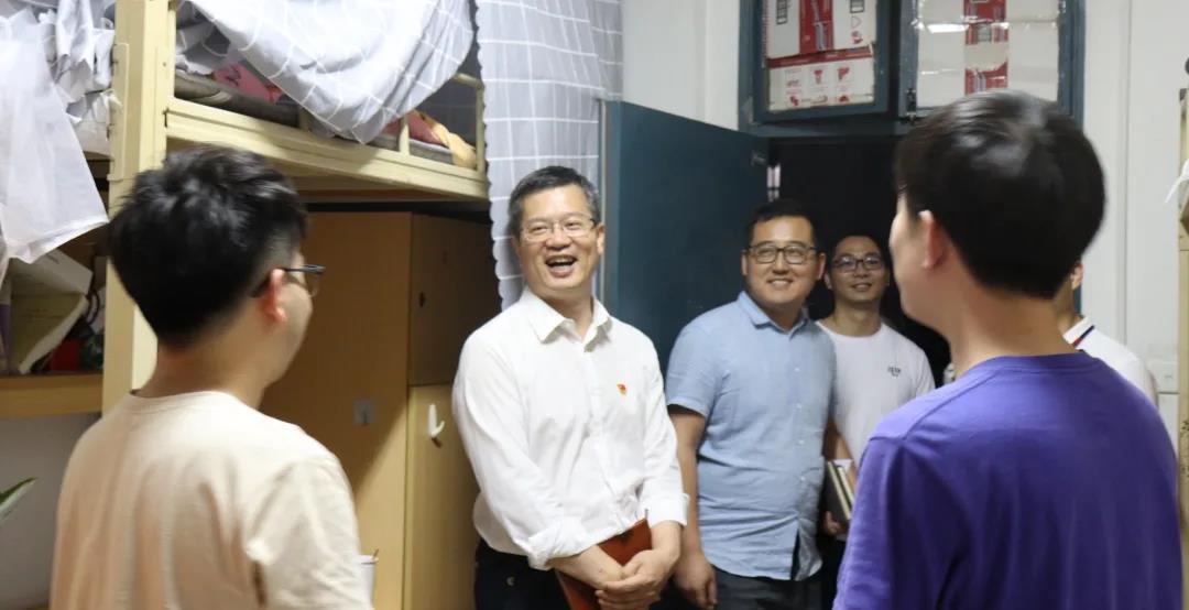 张爱民一行走访了学生宿舍,深入了解学生思想状况,关心学生学习生活情况,并指导马克思主义学院文化走廊建设。走访中,张爱民与学生亲切交流,仔细询问同学们学习、科研、生活、工作、就业等方面状况,提醒同学们务必注意财产安全、消防安全、用电安全、人身安全,勉励同学们要相互关心、团结友爱、互帮互助,共筑良好学风、舍风。
