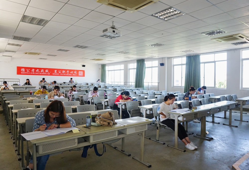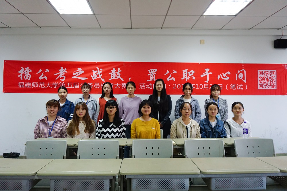 10月28日,由福建师范大学学生工作处、研究生工作部、公共管理学院主办的第五届公务员模考大赛笔试环节于仓旗两个校区同时拉开序幕,来自各学院的550多名考生积极报名参与,公管院提前培训26名师生志愿者为本次大赛服务,确保笔试顺利完成。