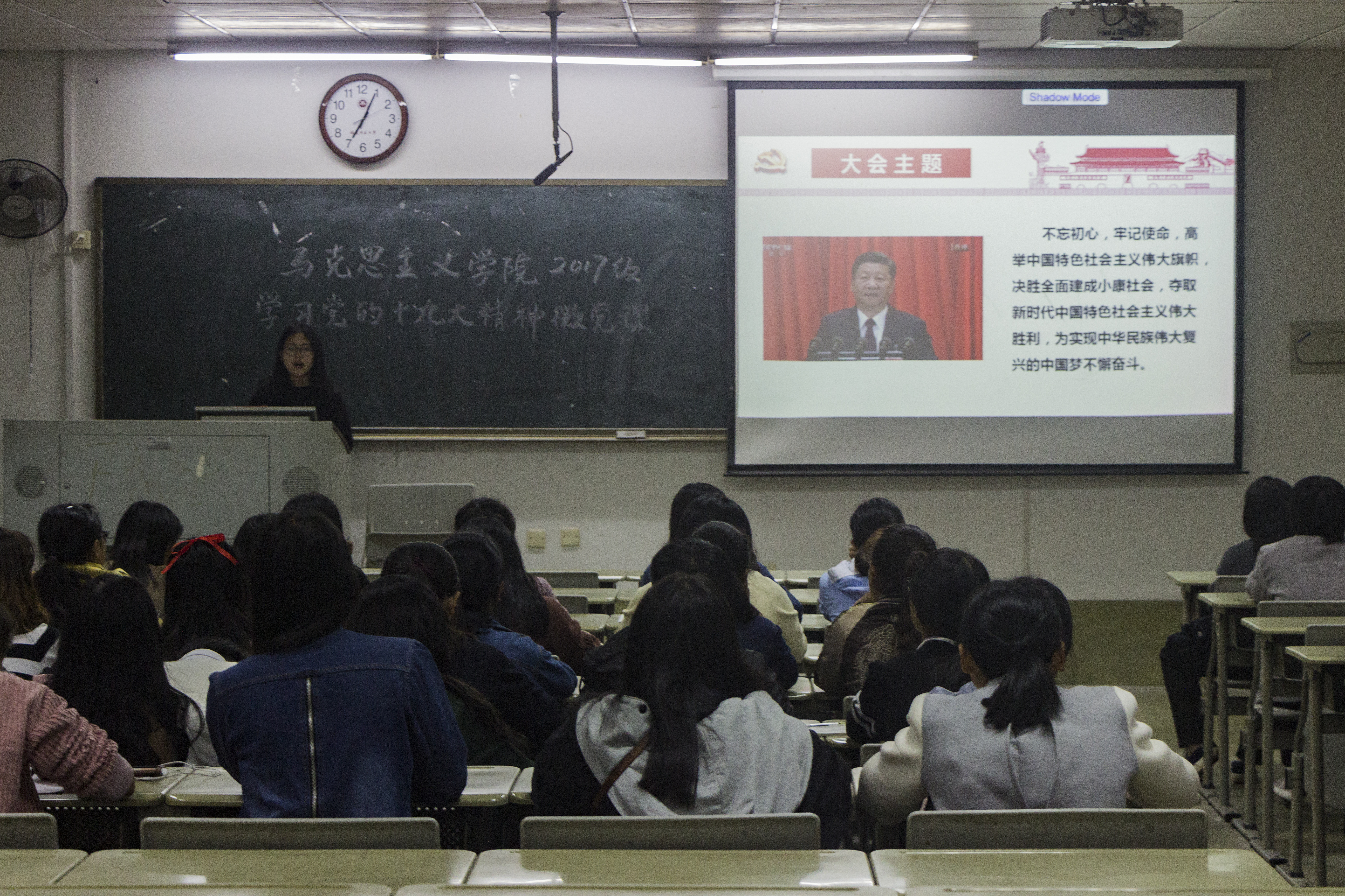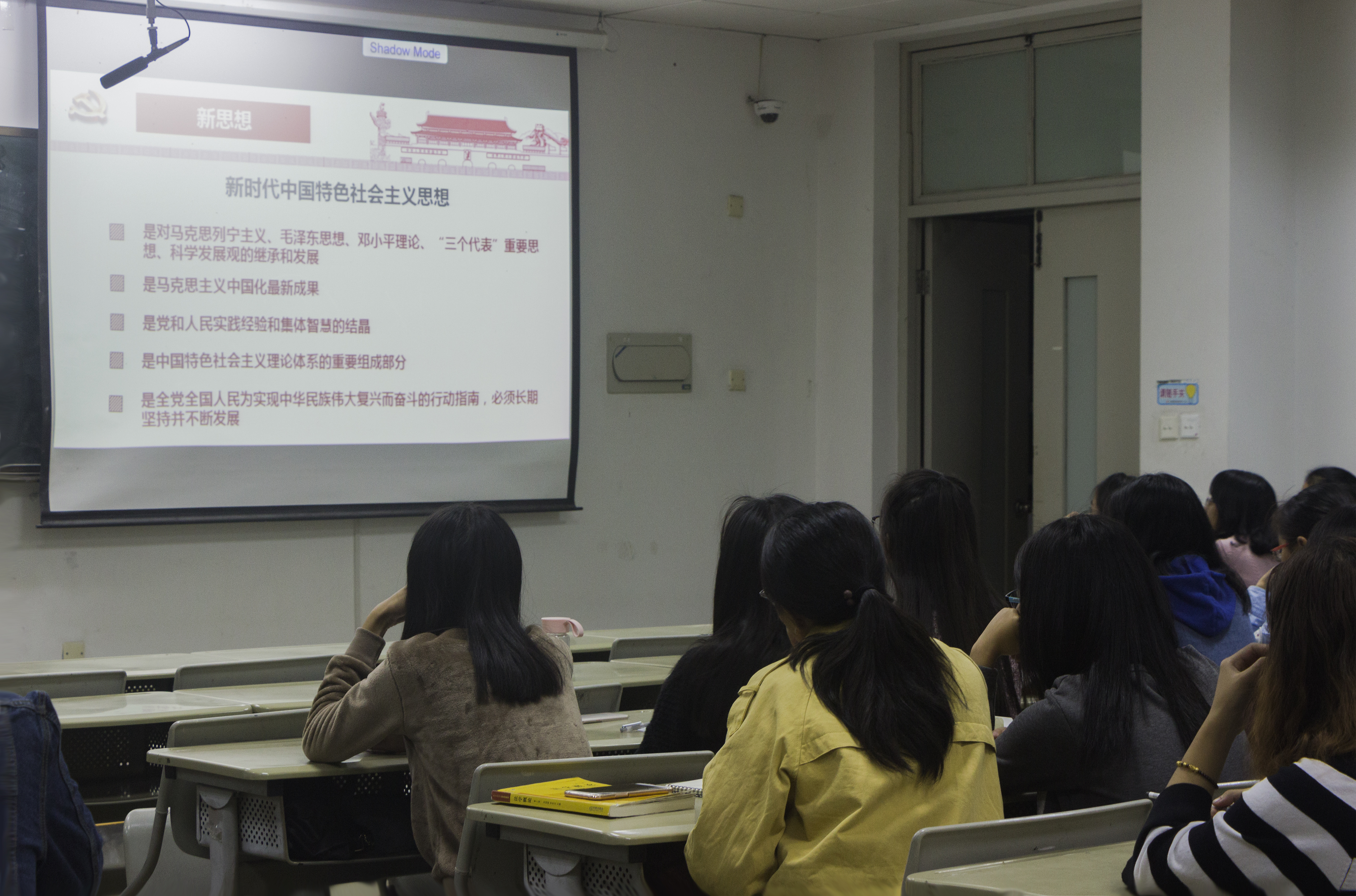 为了更好地学习贯彻党的十九大精神,11月5日晚上19:00,“学习党的十九大精神”微党课于笃行1-208举行。2015级思政二班团支书施珊雅为2017级同学带来了精彩一课。