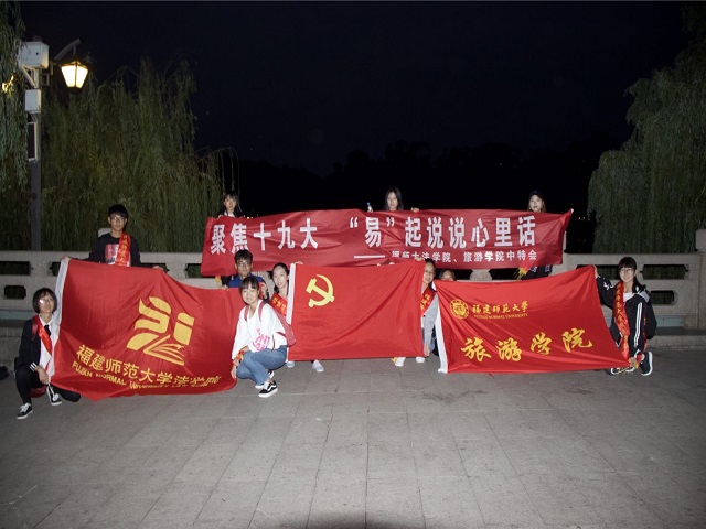 11月12日下午,旅游学院与法学院的中国特色社会主义理论研究会及两院新闻媒体中心的同学们前往福州西湖公园采访收集福州市民对十九大的看法及对国家的祝福并录制相关视频。