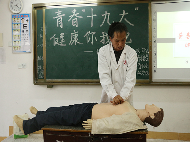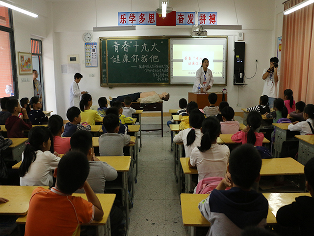 11月8日下午,由闽南科技学院生命科学与化学系团委主办、系青年志愿者协会“青芒”救护队承办、院医所协办的“青春“十九大”,健康你我他----急救技能宣传进校园”活动于南安市康美中心小学展开。医务所所长张勇,主任医师周德馨,生命科学与化学系团总支书记傅莉玲与志愿者们共同参与此次活动。