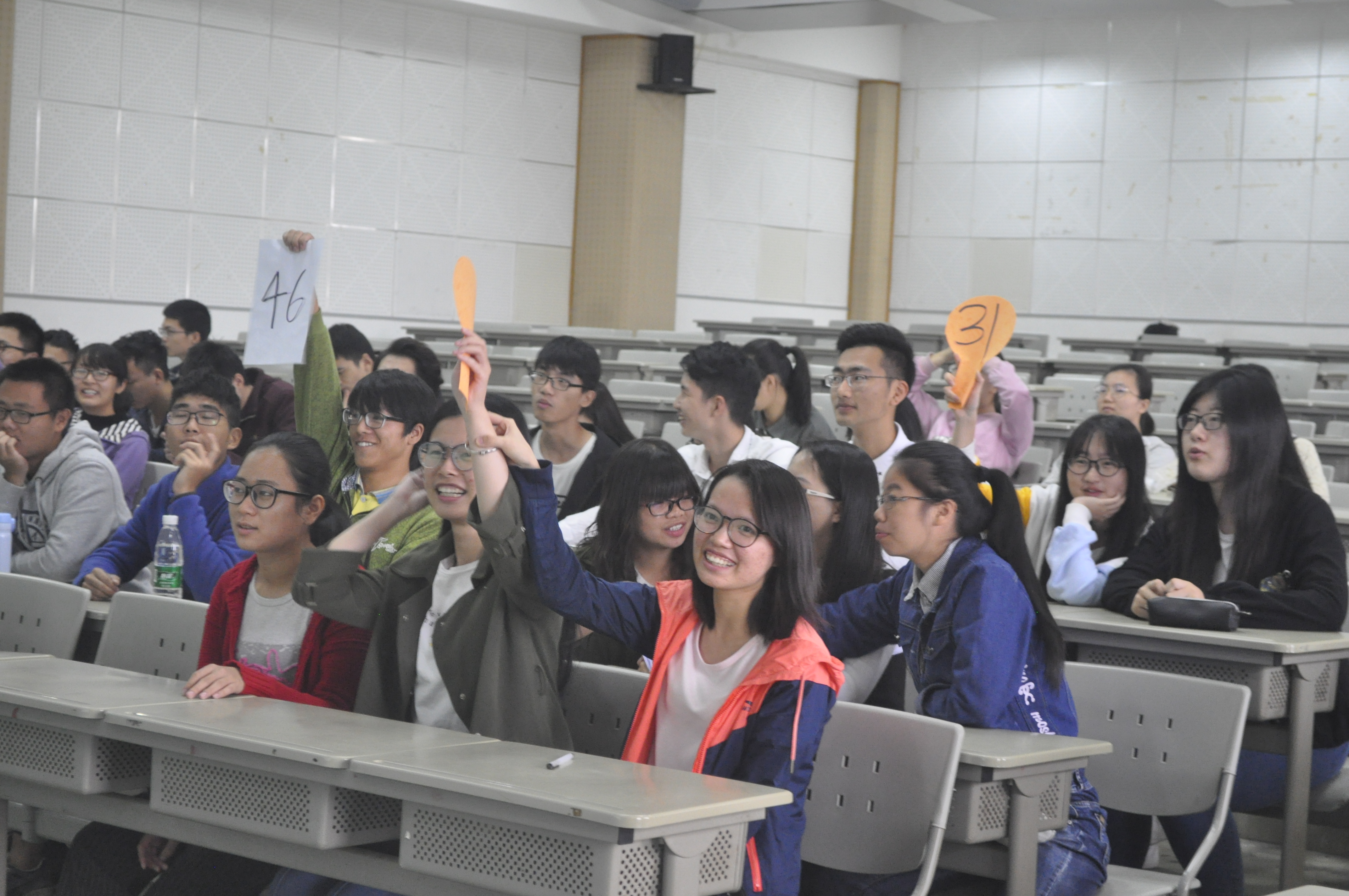 开门见山,十九大竞赛于9点准时开始。本次竞赛分两个小环节,必答题和抢答题,对于早已将“十九大”知识点烂熟于心的同学们,必答题当然是信手捏来,初定十支队伍进入复赛,由于实力相当,比分紧咬,共有十三支队伍进入抢答环节。抢答题的环节更加的紧张激烈,参赛同学都屏气敛息。“抢答开始!”主持人一声令下,各小组举起牌子,“18号请回答”“18号再次回答”“还是18号”主持人公布到。面对18号小组这样强大的对手,化学人也是不会气馁的,教室里掌声响起各小组同学纷纷为自己加油助威。经过一个多小时的竞赛,奖状及奖品尘埃落定。毋庸置疑18号小组获得了比赛冠军。获奖同学上台向大家分享自己的参赛感想及学习心得,老师也对活动进行了肯定和表扬,活动到此结束。