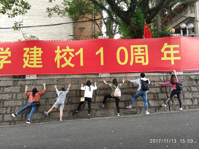 11月13日,2015级金融学第二团支部开展了“忆流金岁月百又十年 看今朝仓旗相望醉眼”迎校庆之“时光穿越”主题活动。亭阁映红,回廊依翠,我校在风风雨雨中成长、壮大,几多易址,几多沧桑,几多辉煌。值此110周年校庆之际,支部全体成员为母校献上祝福。