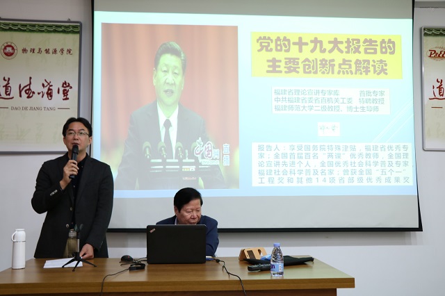 为进一步学习贯彻党的十九大精神,11月22日下午,光电学院在理工楼3#102召开党的十九大精神学习报告会,特别邀请了我校马克思主义学院博士生导师郑又贤教授主讲。光电学院全体教师、学生党员代表参加报告会,院党委书记侯建雄主持会议。
