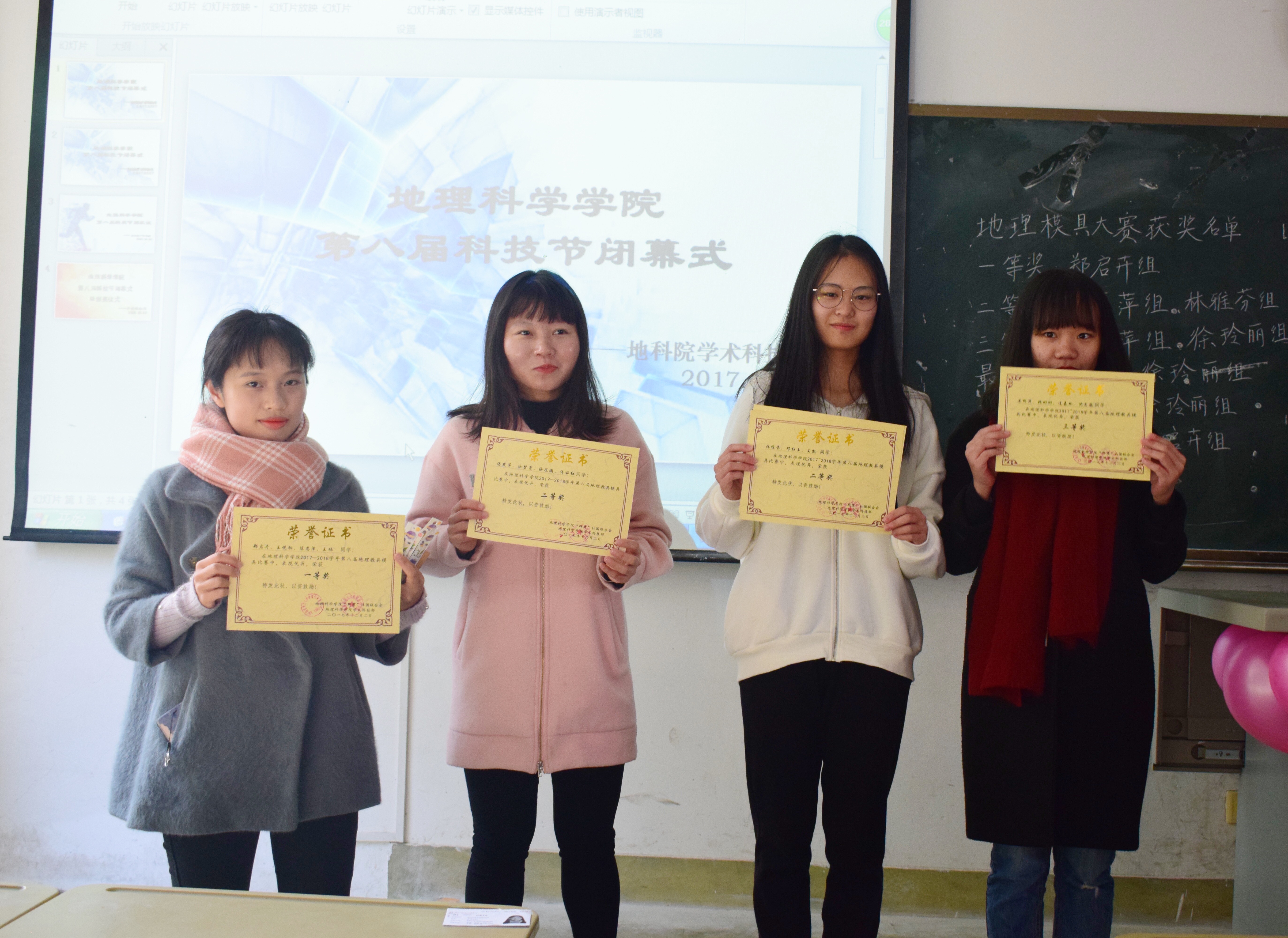 12月17日,由地理科学学院学术科技部举办的第八届科技节闭幕式在笃行1-216举行。出席本次活动的有2016级的部分同学和2017级的部分同学以及爱好科创的同学。
