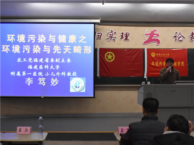 12月20日晚,环境科学与工程学院于致广2-101名师讲堂举办环境污染与健康之环境污染与先天畸形讲座。此次讲座邀请农工党福建省委副主委、福建医科大学附属第一医院小儿外科李笃妙教授主讲,环境科学与工程学院2015级、2017级全体同学参加。讲座由环境科学与工程学院院长钱庆荣教授主持。