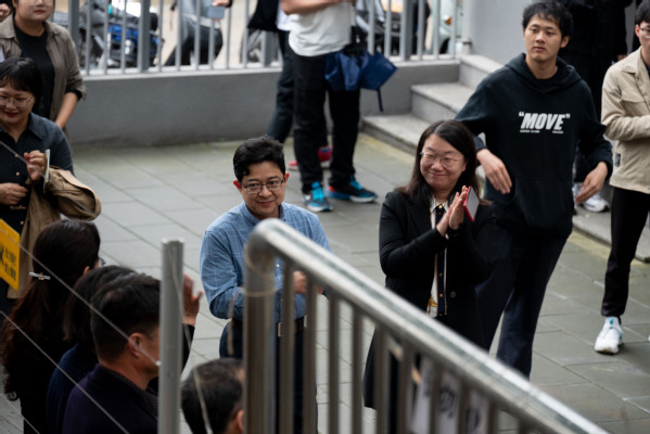 4月12日下午,教师教育学院团委、学生会在“一站式”学生社区(学生公寓D楼庭院)隆重举办师范生教学技能大赛之三笔一画决赛。福建省幼儿高等师范专科学校人文科学学院书记王奕、人文科学学院院长姜平,副院长林榕、徐晋华等一行10余人,在教师教育学院党委书记陈祖棋、院长吴文哲、学院党委副书记黄一菁、小学教育系主任程明喜及多位科任教师的陪同下,莅临现场观摩指导。