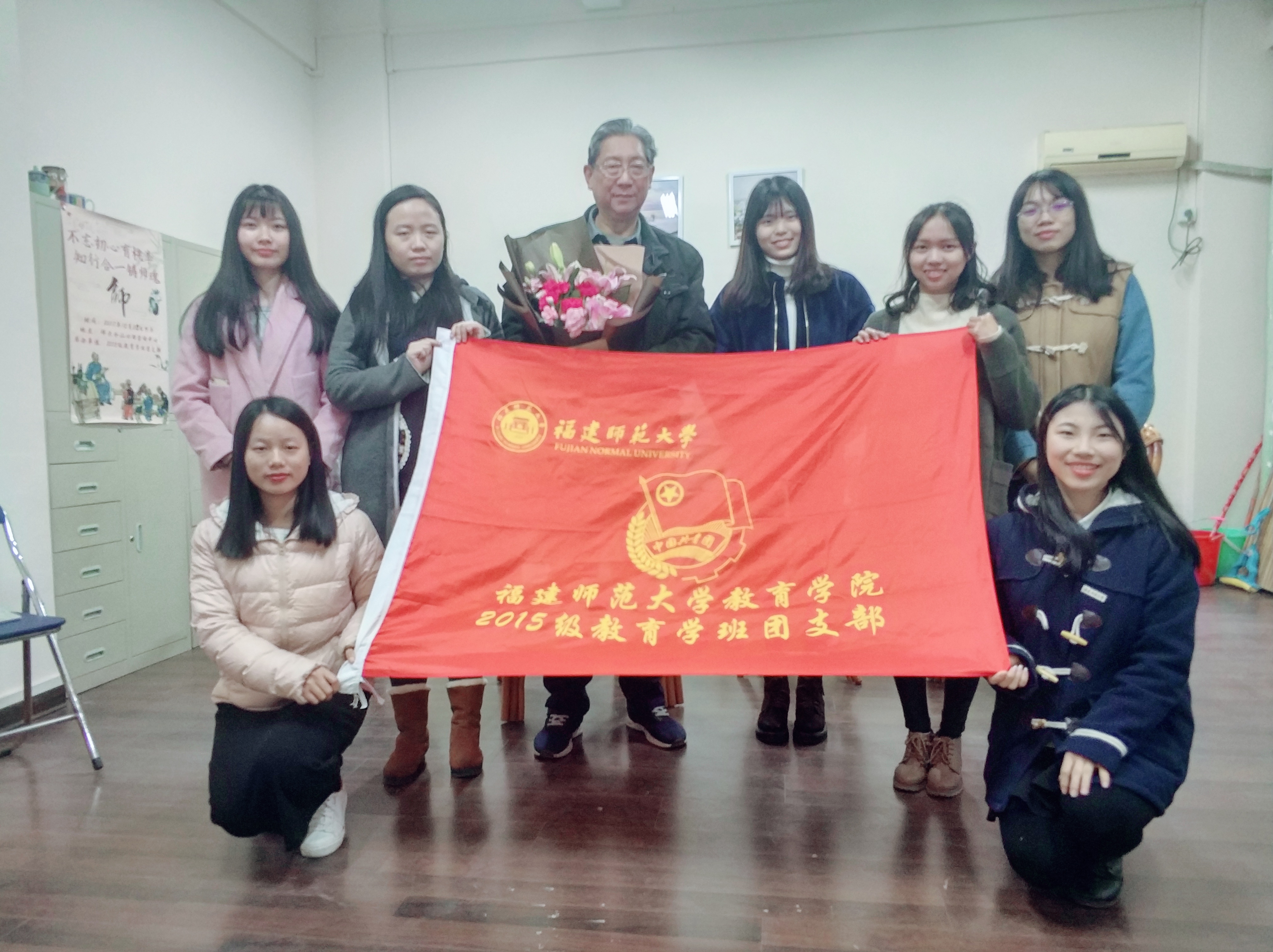 为促进大学生心理健康发展,树立正确的价值观,积极响应十九大报告中“坚持社会主义核心价值体系”的基本方略, 福建师范大学教育学院、教师教育学院2015级教育学班团支部,于12月27日下午在福建师范大学仓山心理健康指导中心团辅室开展了以“不忘初心育桃李,知行合一铸师魂” 为主题的团日活动。此次活动邀请了福建师范大学关心下一代工作员会副主任李淑贞教授、心理健康指导中心主任程利国教授作为嘉宾进行访谈。