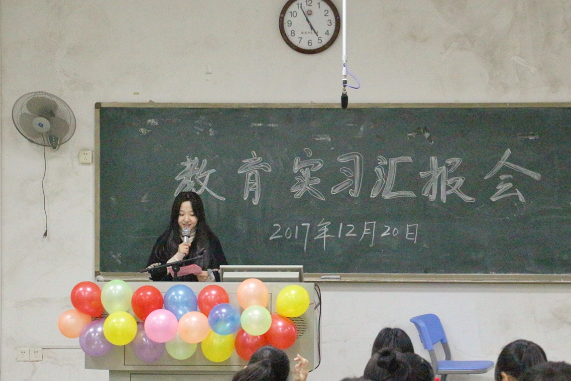 12月20日,数学与信息学院2014级教育实习汇报会在笃行-115教室如期举行。出席本次动员大会的嘉宾有:福州四中实验班1队、分散实习3队指导老师潘飚老师,漳州一中、厦门科技中学、分散实习1队指导老师张圣贵老师,福州格致中学实习队指导老师李祎老师,福州远洋小学实习队指导老师郑开杰老师,安溪一中实习队指导老师柯品惠老师,福州华侨中学实习队指导老师王考振老师,福州第十六中学实习队指导老师陈剑岚老师、数学与信息学院办公室副主任李晓英老师以及14级辅导员杨柳慧老师。