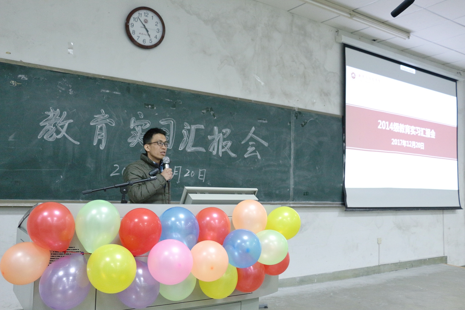 首先,潘飚老师对此次实习做了总结,强调了学校对本次认识实习的重视,希望通过这次教育实习,同学们可以收获教学经验,得到锻炼和成长,以最好的状态迎接教师招考;随后,各个实习队代表对本队的实习生活进行了汇报;最后,数学系主任柯品惠老师讲话。他说:认识实习是最基础,也是很重要的一部分,实习是一次能够把专业理论知识与实践结合的很好的机会,希望大家在反思中不断总结在这次实习中的得与失,同时调整好心态,以认真的态度迎接接下来的教师招考。