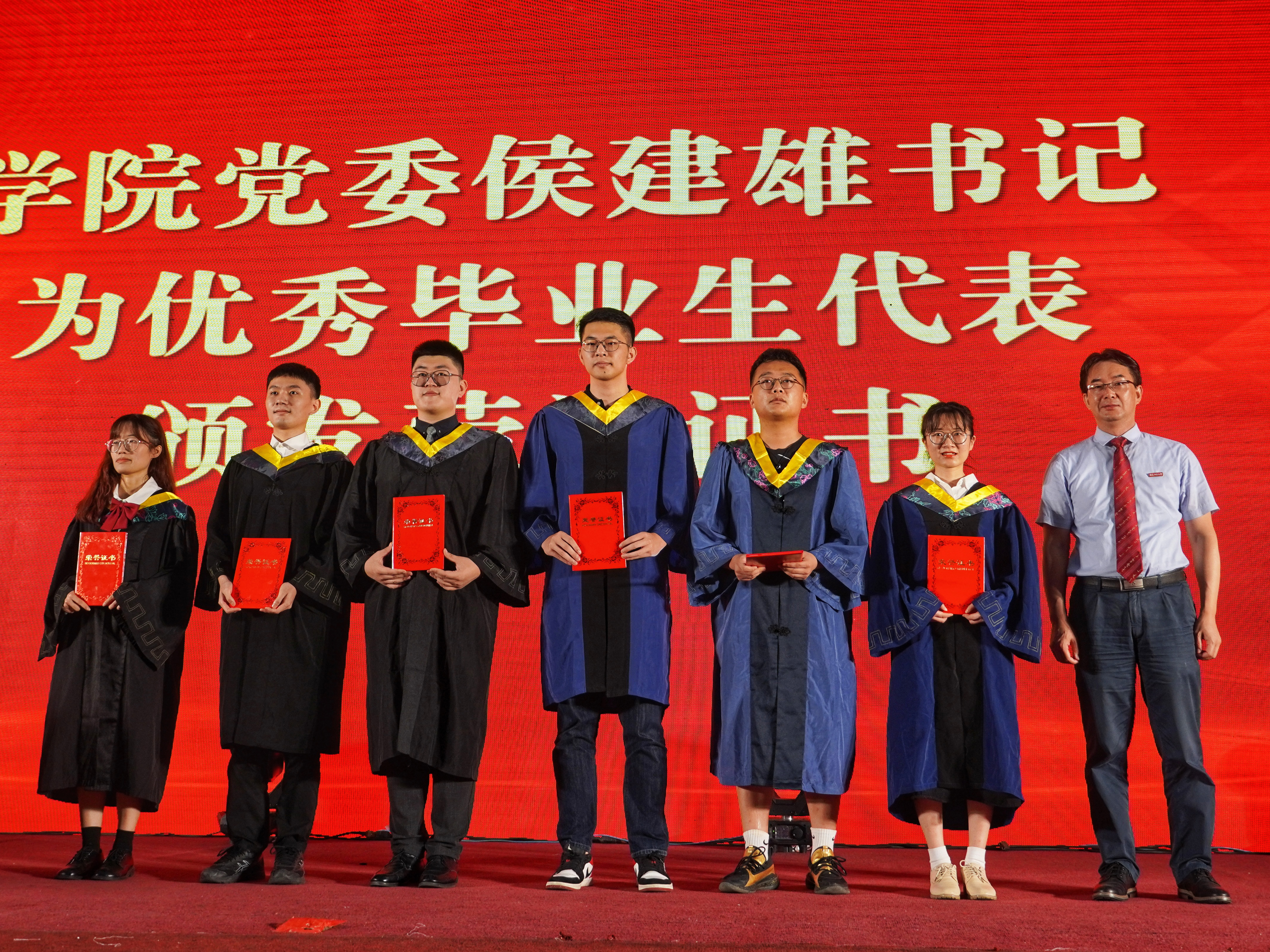 学院副院长张先增教授宣读了2021届本科及研究生准予毕业名单、授予学位名单,以及优秀毕业生名单、校友联络员名单。侯建雄书记为优秀毕业生代表颁发荣誉证书,教师代表朱小钦教授为毕业生送上祝福,深情寄语同学们在奋斗中释放青春激情、追逐青春理想,在岗位上奉献青春力量、成就出彩人生。本科生毕业生代表谢智鑫、研究生毕业生代表王颖分别发言,他们回顾了美好大学时光中的收获与成长,向母校和全体老师的辛勤培育致以崇高敬意,并鼓励同学们勇敢地开启人生新篇章,不负韶华、勇敢追梦,用奋斗书写精彩的青春华章。