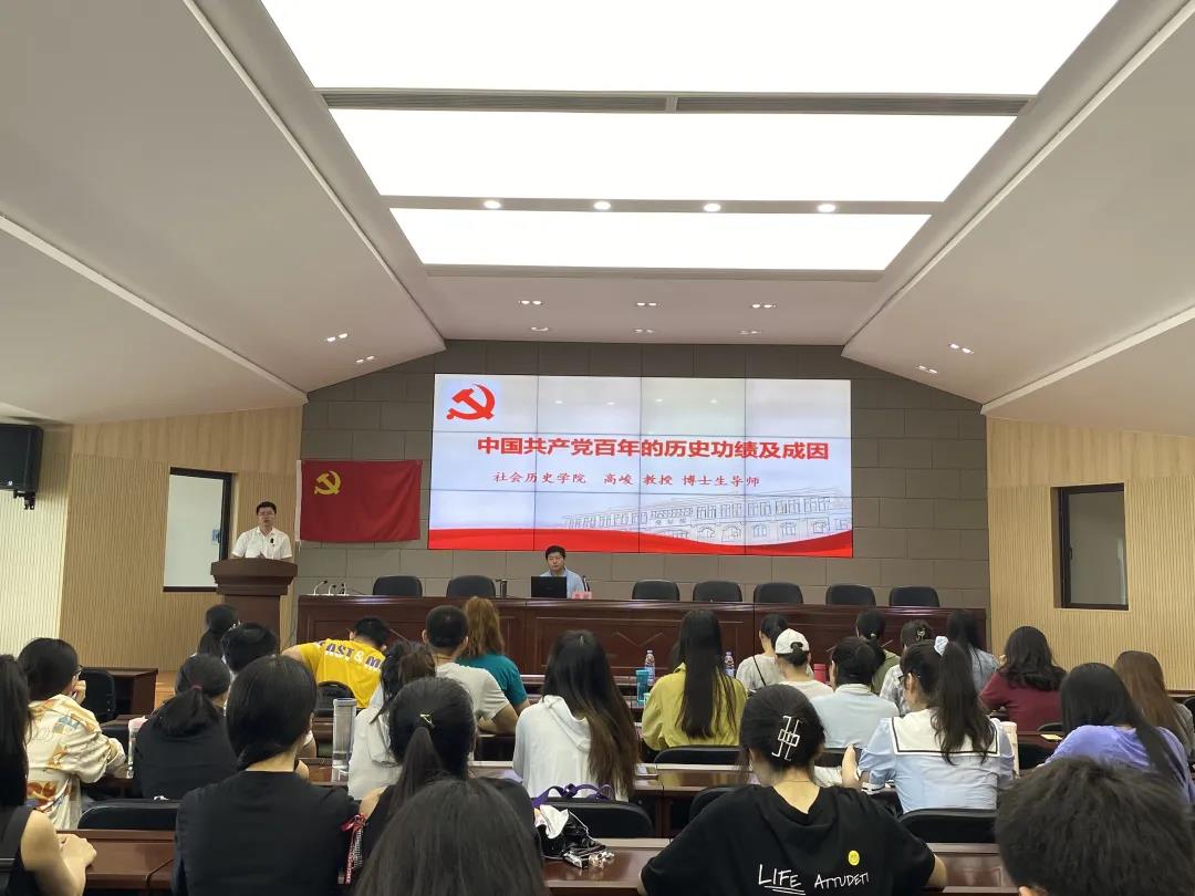 为迎接中国共产党成立100周年,深入推动党史学习教育,6月15日上午,社会历史学院于领先楼五楼报告厅开展“中国共产党百年的历史功绩及成因”讲座,邀请学院党史专家高峻教授进行授课。讲座由学院团委书记巫志峰老师主持,学院政工干部、院两委、学生党员以及入党积极分子到场参加。