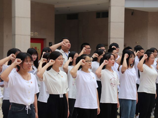 参观活动开始前,在刘敏副书记的带领下,全体发展对象高举右拳,庄严站立,共同宣读了入党誓词,时刻提醒自己以一名党员的标准严格要求自己,铭记革命历史、传承革命精神,为早日加入中国共产党而努力奋斗。随后,大家进入了以“理想照耀中国——革命风雷——福建近代革命史与中华人民共和国成立以来福建取得的辉煌成就”为主题的福建省革命历史纪念馆参观。