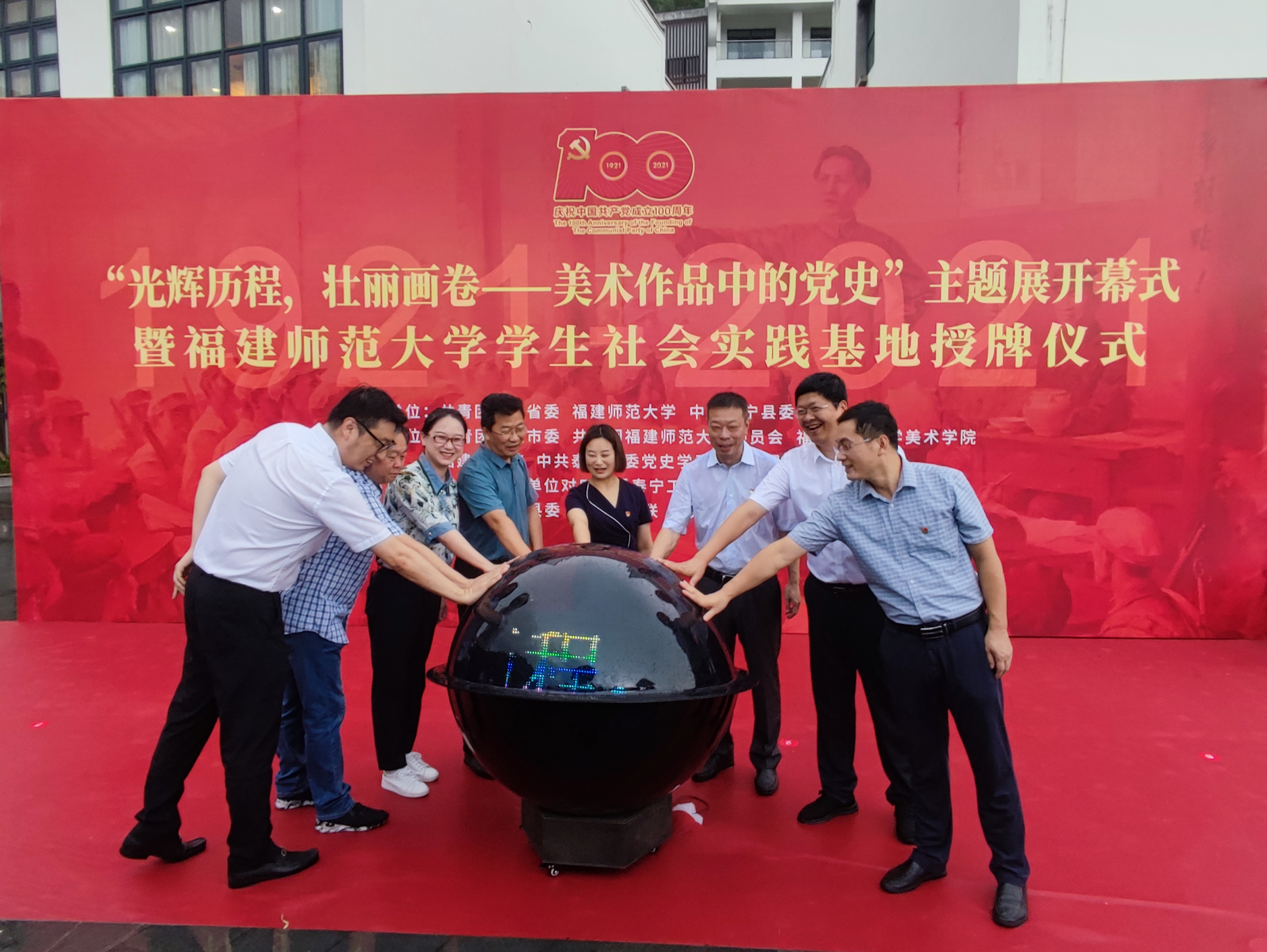 7月29日下午,“光辉历程 壮丽画卷——美术作品中的党史”主题展开幕式暨福建师范大学学生社会实践基地授牌仪式在三明市泰宁县隆重举行。此次活动由共青团福建省委、福建师范大学、中共泰宁县委主办,共青团福建省委副书记刘安娟、三明市政协副主席陈欣、福建师范大学党委副书记李绚、共青团三明市委书记陈建秋、福建师范大学团委书记戴少娟、美术学院党委书记赵立新、副院长(主持工作)罗礼平、党委副书记乐有方、工会主席王裕亮,以及泰宁县各界青年代表、党史学习宣讲实践队等120余人参加了本次主题展开幕式。开幕式由泰宁县委常委郝栋主持。