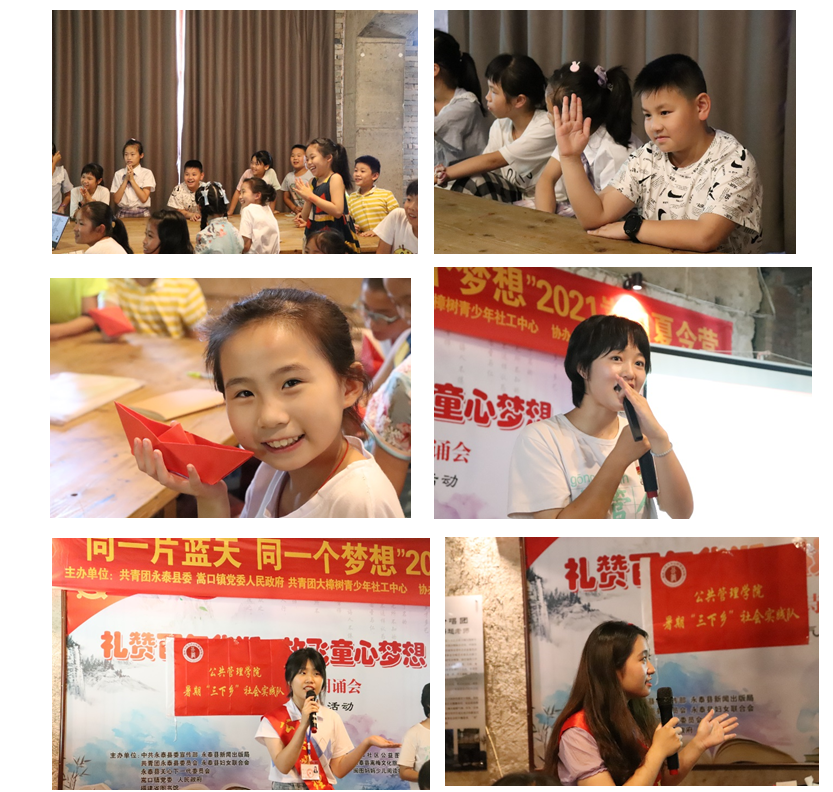 宣讲活动内容丰富,妙趣横生。实践队队员选取有重大历史意义的事件,以通俗生动的语言向嵩口镇的小学生科普有关中国共产党的知识,讲述中国共产党领导人民奋斗的艰辛历程。此外,实践队还设置《请党放心,强国有我》诵读、《送你一朵小红花》手语舞、叠红船写祝福等丰富多彩的环节,让嵩口的小学生通过趣味的方式礼赞建党一百周年,激发其了解、学习党史知识的热情和兴趣。参加活动的小学生全程积极举手,主动发言,踊跃互动,充分展现少先队员的青春朝气和良好风采。