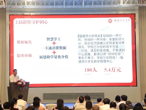 面对学生资助工作从“绝对贫困”到“相对贫困”的新考验和困难群体隐蔽性、差异性、动态性的新挑战,福建师范大学立足精准资助实践和“温暖集体”建设,以数据融通筑基、以静默守护润心,通过数据分析、行为观察、动态识别等方式,主动发现需要帮助的学生,将资助化为“无声的陪伴”,将温暖直接送达。