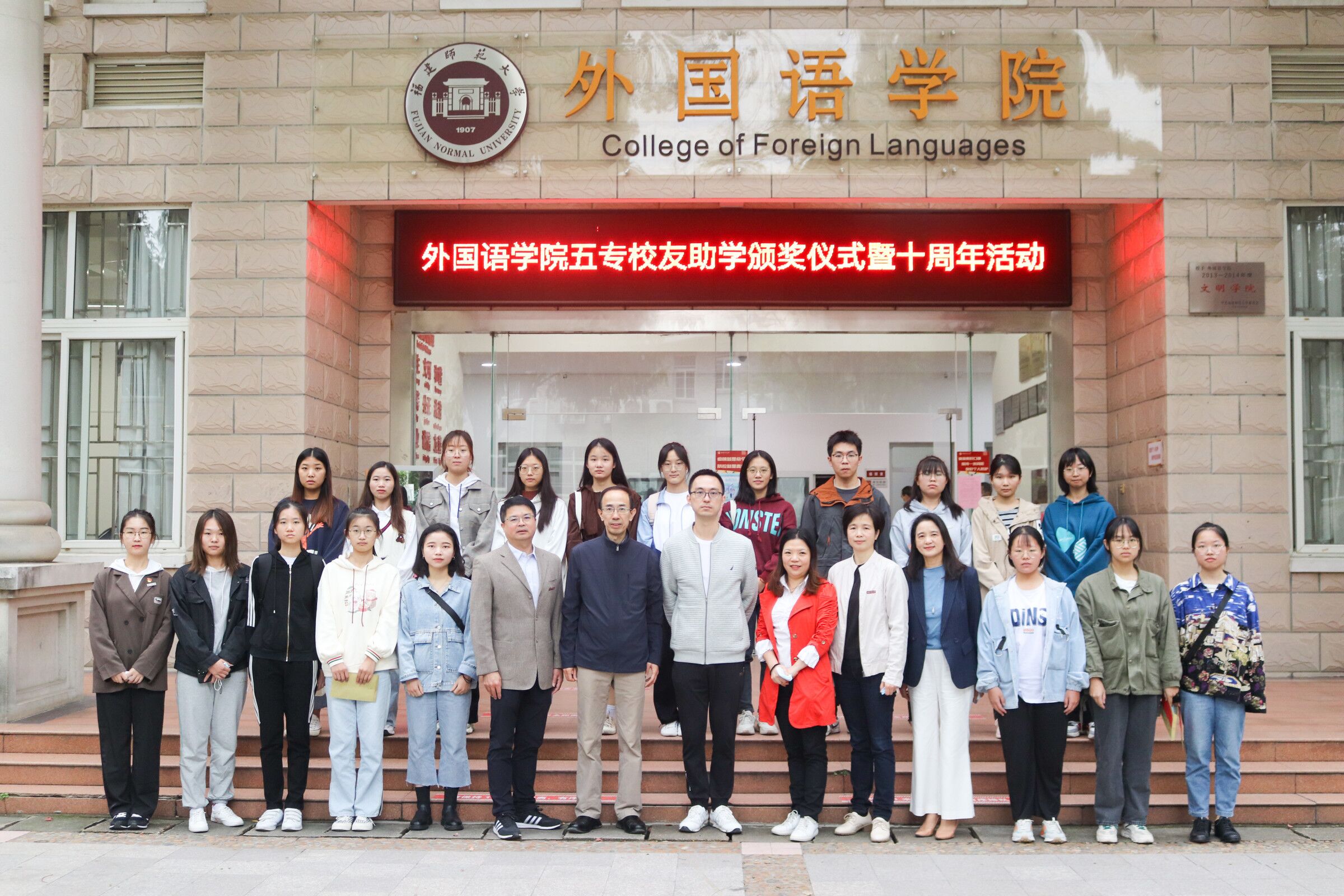 2021年10月23日上午,外国语学院在外语楼5楼会议室举行五专校友助学十周年助学金颁发仪式,会议线上线下同时进行。出席此次颁发仪式的有:外国语学院党委书记章琳研究员,外国语学院院长、博士生导师葛桂录教授,外国语学院纪委书记、党委副书记吴志锋,五专校友代表黄晖女士、王辉滢先生,商务英语系主任刘茵老师,团委书记黄远老师,2021级辅导员张甜甜,2021年度受助学生等。颁发仪式由院党委副书记吴志锋主持。