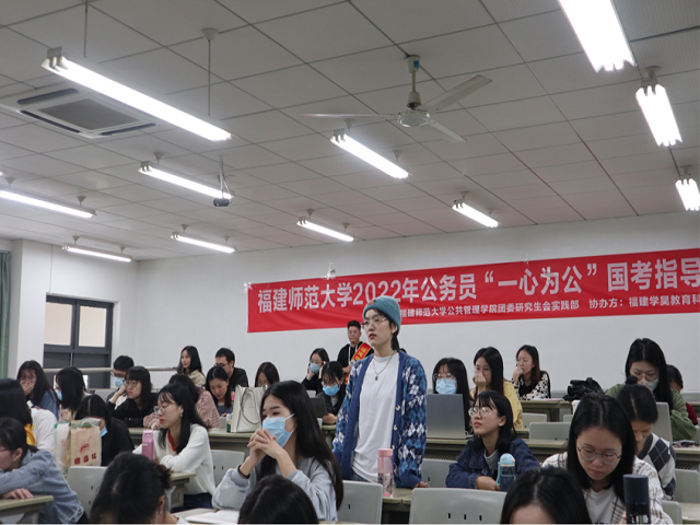 2021年11月7日上午,公共管理学院在立诚楼1-101教室举办“一心为公”2022年公务员国考专题指导讲座。本次讲座邀请福建学昊教育科技有限公司的吴春春老师分享经验,公共管理学院2019级、2020级、2021级研究生和部分其它学院学生参与了此次讲座。