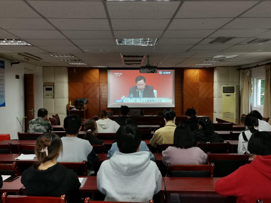 11月12日上午,法学院组织师生代表通过线下集中和线上学习等方式,深入学习党的十九届六中全会精神。师生们认真研学中国共产党第十九届中央委员会第六次全体会议公报,观看十九届六中全会精神新闻发布会直播,深入理解、深刻体会全会精神,大家纷纷表示要紧跟党的步伐,不断学习全会精神,加强理论学习,练就过硬本领、锤炼党性修养,为实现第二个百年奋斗目标、实现中华民族伟大复兴的中国梦贡献自己的力量。