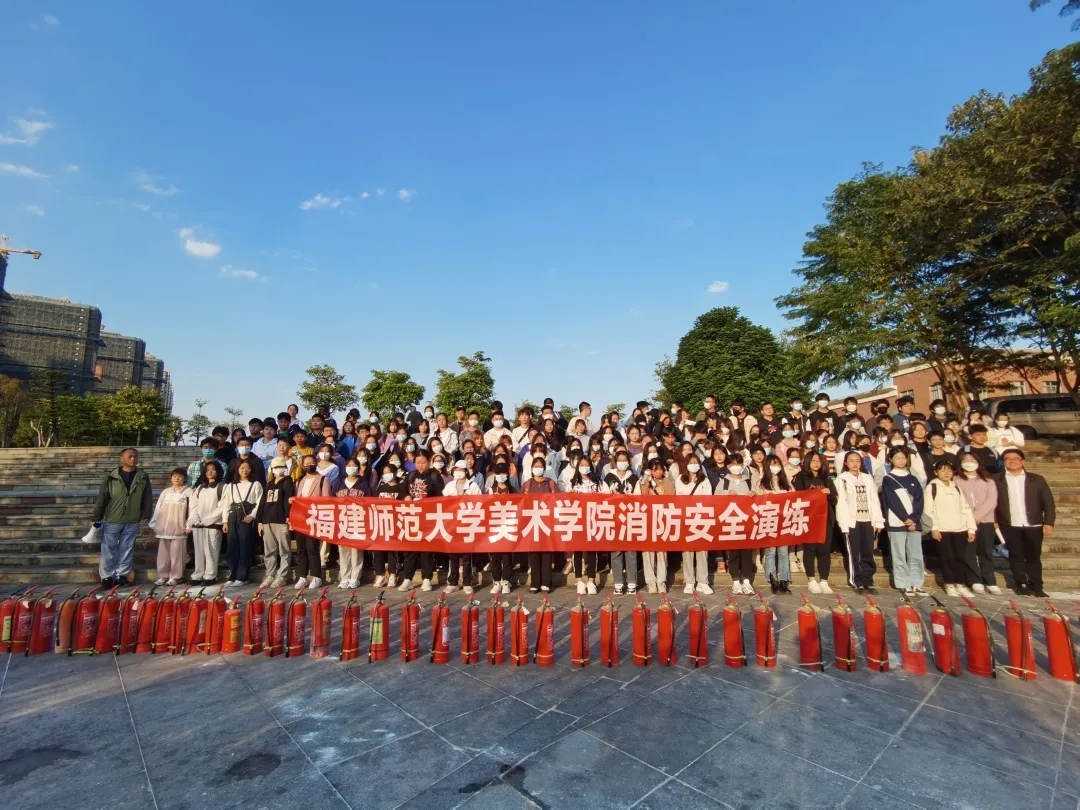 为进一步增强美术学院学生的消防安全意识,全面了解消防安全知识,切实提高学生应急处理及自救自防能力。11月12日下午在旗山校区溪源江边开展消防安全演练活动,本次活动邀请校保卫处消防科科长曾彦扬老师为学生开展消防演练指导,学院党委副书记乐有方、辅导员、2021级全体新生近300人参加演练。