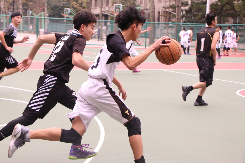 下午四时,第三场比赛开始,由社会历史学院2014级同学对战2016级的男篮比赛在物光篮球场打响。2014级选手们普遍具有身高优势,迅速地传球,进行了较为默契的配合。第一节刚开场14级球员就不断拉开比分差距。双方对战十分激烈,以至于球多次出界。