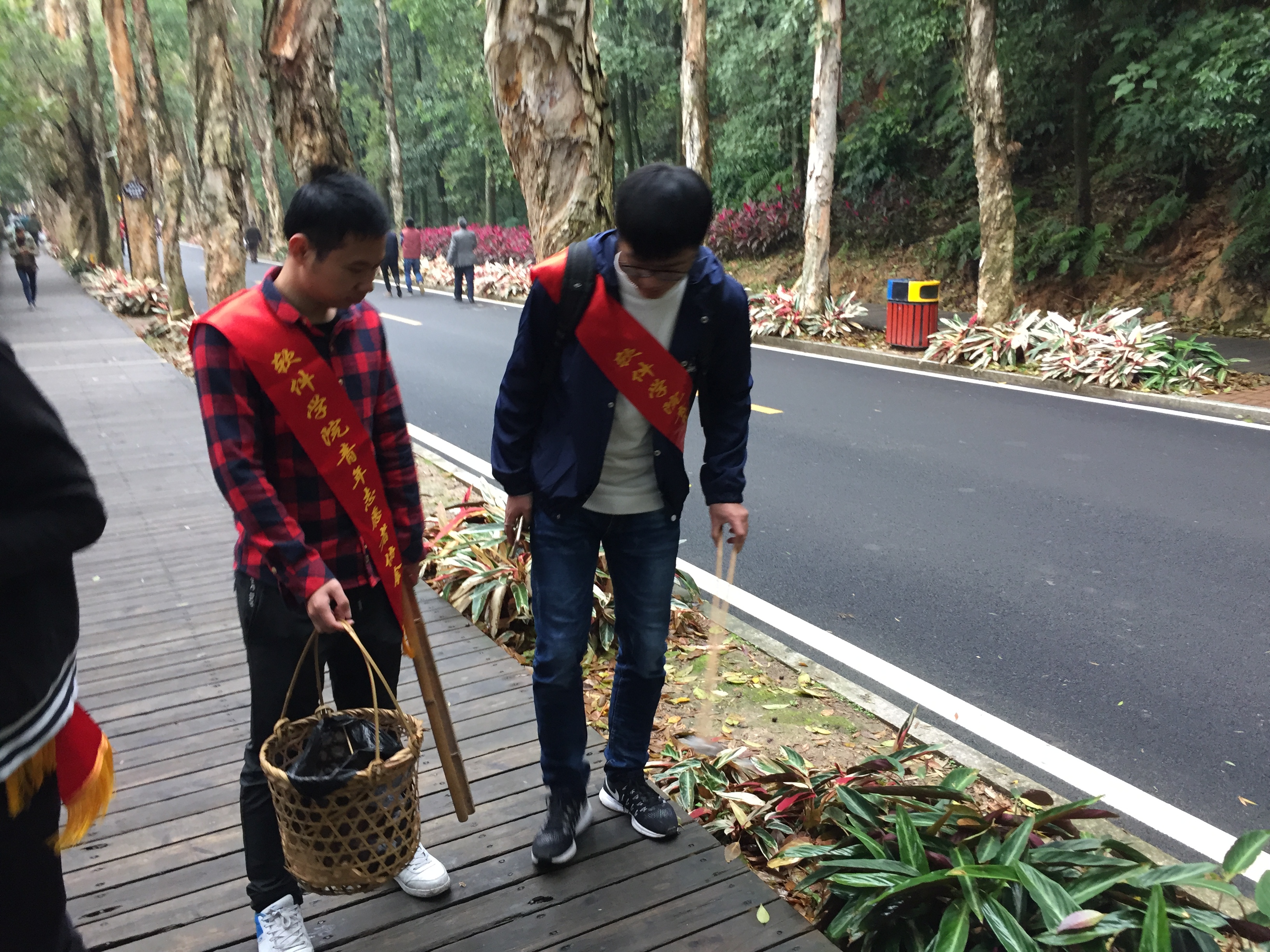 清晨7点30分,软件学院的志愿者们便早早的带着夹子,垃圾桶和垃圾袋搭上了前往森林公园的公交车。到达目的地后,志愿者们分为四组开始对公园进行垃圾清理。志愿者们针对道路,草坪,观光走道等游客较多的地方进行我们的清理活动,由于前些天一直下雨,许多垃圾都被半掩埋进土里,这也让我们捡垃圾的难度增加不少。不过志愿者们的热情依然不减,沿途还受到了许多游客朋友的称赞,连许多小朋友都纷纷加入了我们的队伍,让我们深深的体会到了志愿活动的快乐所在。经过了几个小时的奋战,四队志愿者们都陆续完成任务重新聚集到了一起,每个小队都清理了许多袋垃圾,活动圆满成功。