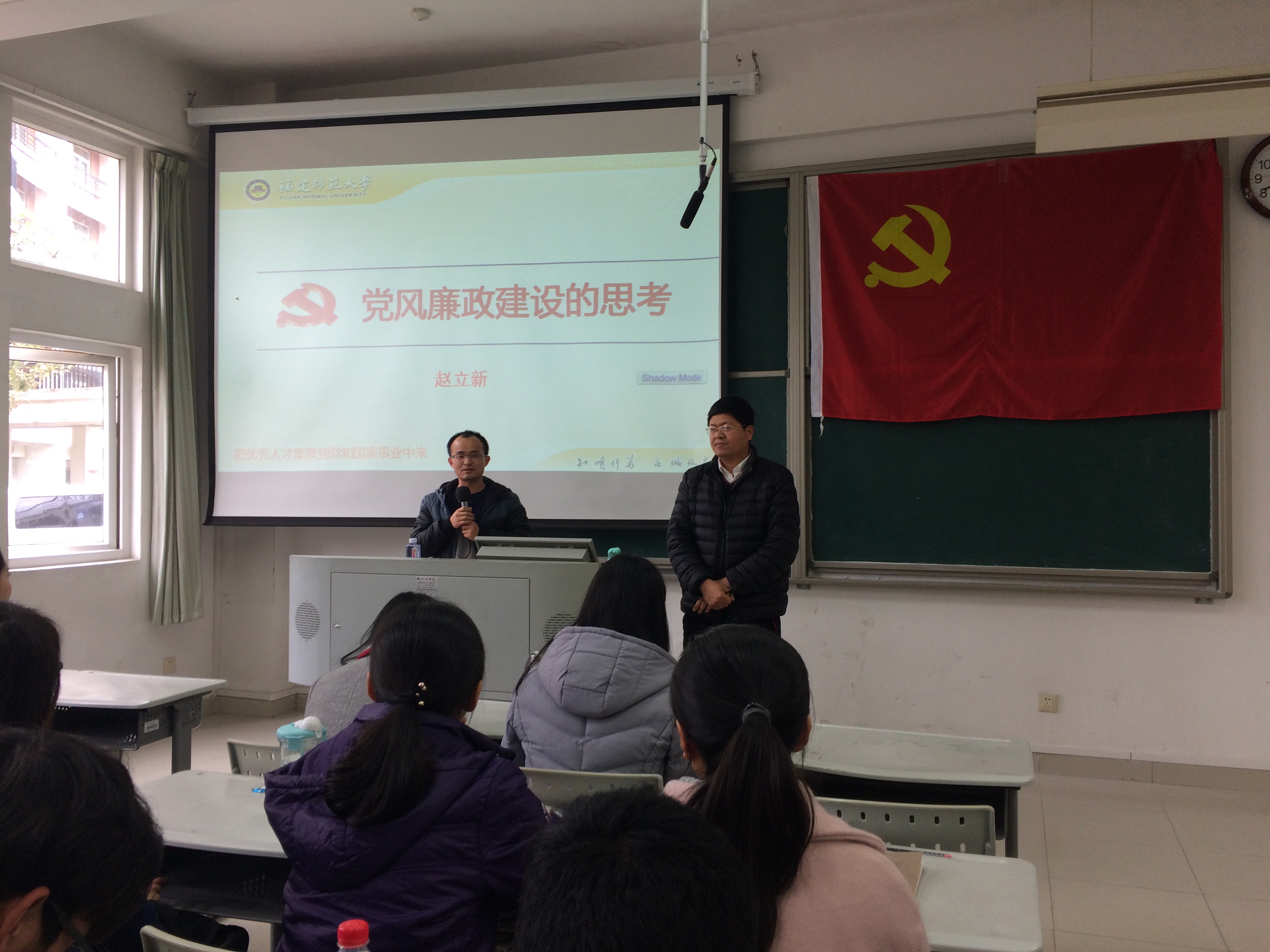 赵书记围绕“党风廉政建设的思考”, 首先以如何解决思想上入党为引,从中国近代以来的屈辱史出发,讲述了中国共产党自成立以来所遭遇的苦难,向学员们展示了中国共产党多年来的坚守,勉励学员们从思想上入党。随后,赵书记就我院的发展历程,向学员们阐述了学风建设问题,鼓励学员们从思想上保持先进性,树立良好的道德品质。最后,赵书记以美国中情局提出的《中国十诫》为例,告诫学员们应当在生活中努力提高自身意识形态的修养。