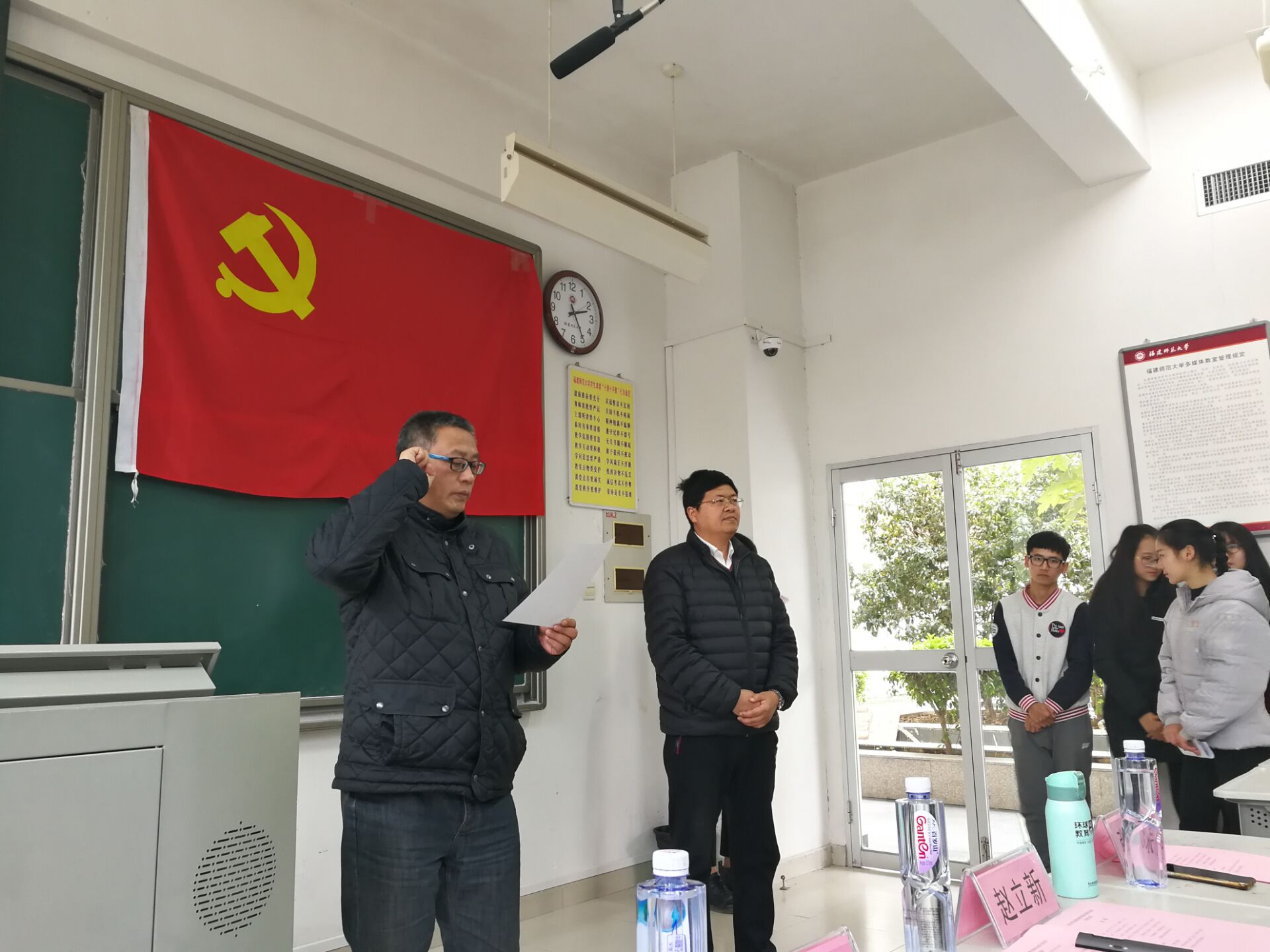 伴随着庄严的国歌,本次开班仪式正式开始。在院党办主任张永忠老师领誓,院党委书记赵立新老师监誓下,全体宣誓人员进行严肃宣誓。随后,赵书记结合自身成长经历发表了本次开班仪式致辞,并希望同学们在今后的学习生活中能勤勉奋斗,做一名合格的中国共产党党员。