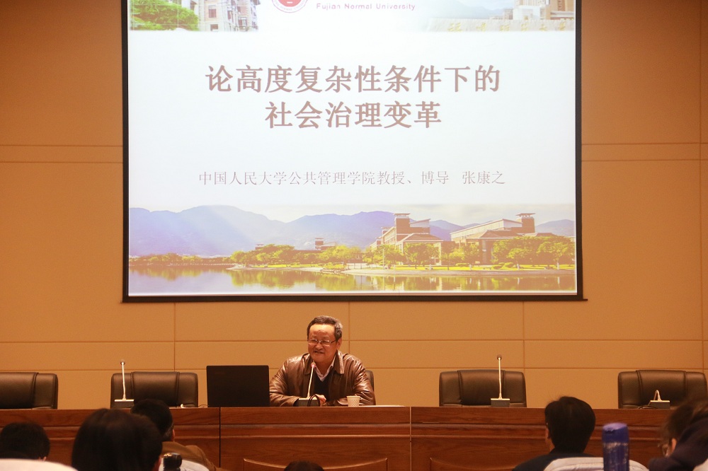 3月16日下午,公共管理学院邀请中国人民大学博士生导师张康之教授于仓山校区邵逸夫楼三楼学术报告厅开展题为“论高度复杂性条件下的社会治理变革”专题讲座,公共管理学院2015、2016级研究生、部分本科生到场聆听,讲座由我院副院长曾盛聪教授主持。