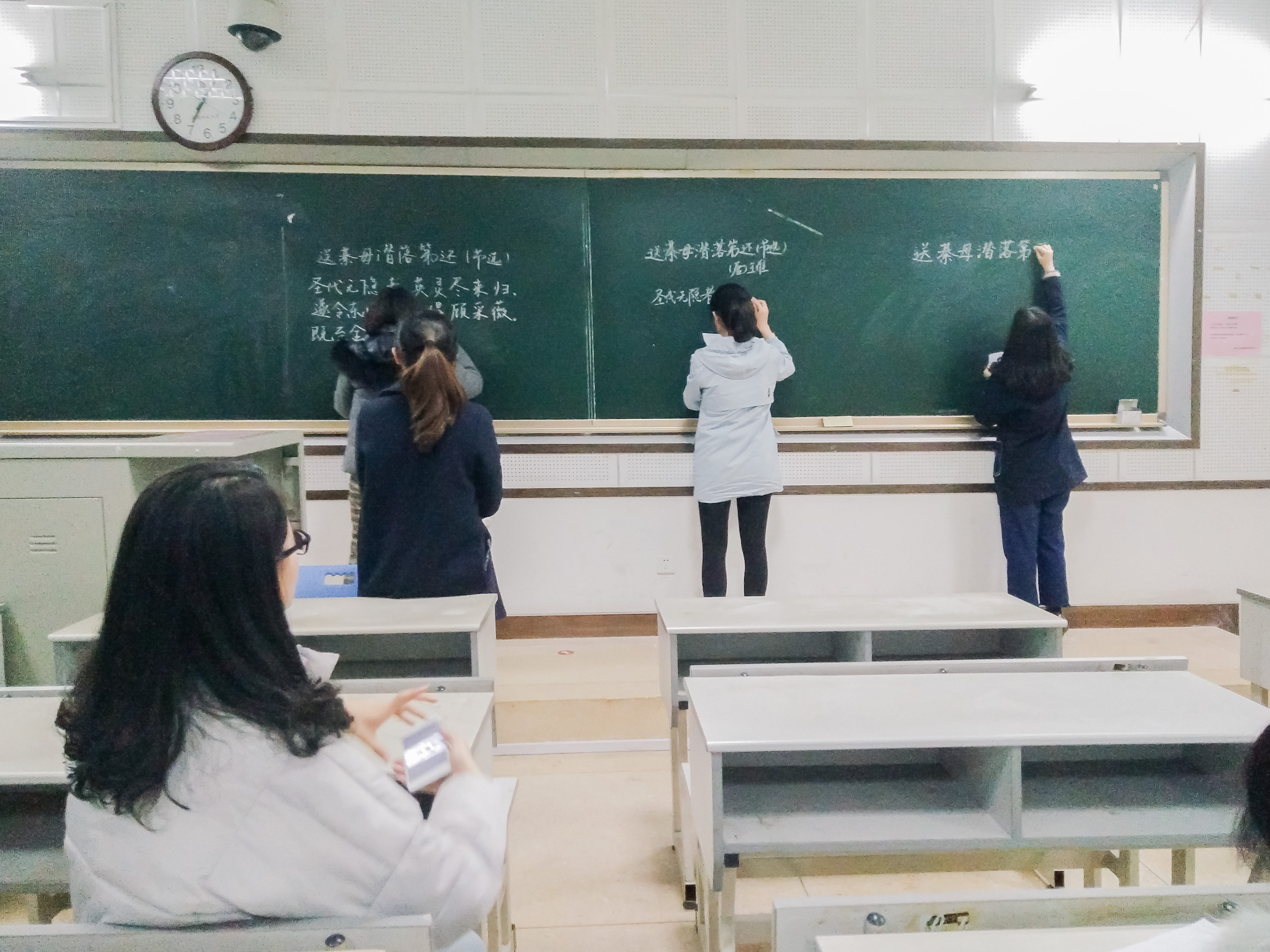 书法雅尚,翰墨千秋。3月14日晚19点,外国语学院2016-2017学年三笔大赛复赛在外语楼110教室举行。本次大赛分为毛笔、硬笔、粉笔三个组别,我校文学院副教授张家壮老师担任本次大赛评委。