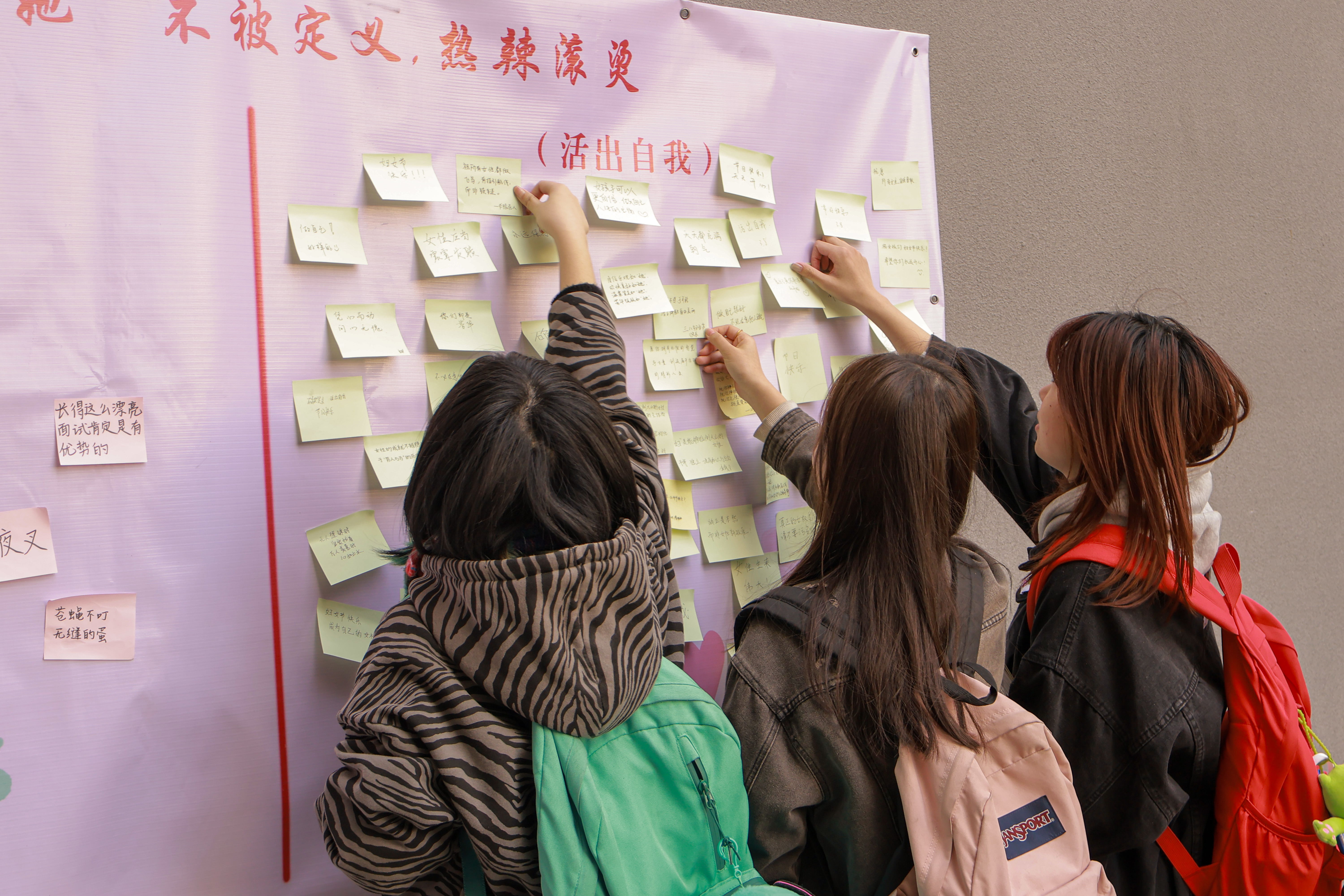 活动中,第一个环节是“撕去标签,活出自己”。女生们纷纷撕下社会对女性角色设定的刻板标签,勇敢地展现出真实的自我。值得一提的是:在现场不少男生也积极参与到活动中,为女生们送上祝福。紧接着,活动进入第二个环节——“以书换花,续写山海情”。同学们纷纷拿出自己心爱的书籍交换浪漫,其所捐出的书籍将交予学院“木棉课堂”团队,捐赠给边远山区的孩子们,为他们的成长之路点亮一盏明灯,续写新时代教育山海情。