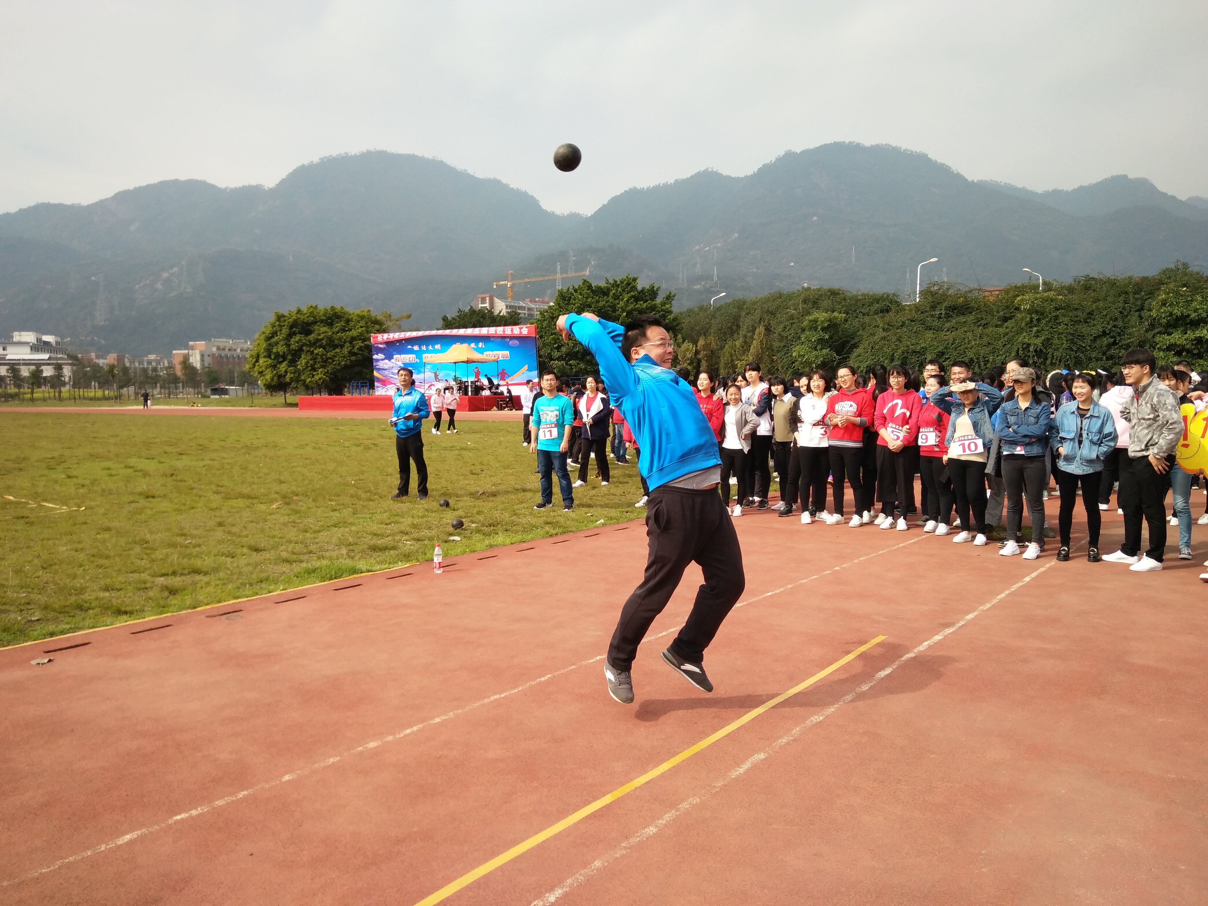 最精彩的要数定点投篮项目了,男教师们赛前热身试图找回指间与篮球的熟悉度,个个跃跃欲试,想在全院师生面前展现自己在篮球方面的绝高造诣。女教师们也毫不服输,以柔韧有力的行动展现刚强的一面,转眼间,球便以优美的弧度落入框中,引来现场阵阵掌声。