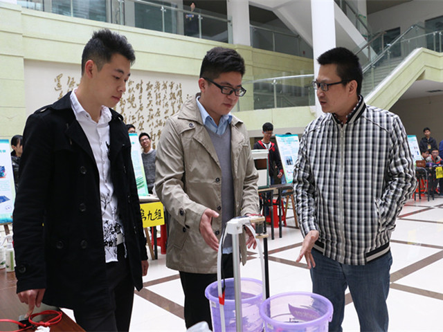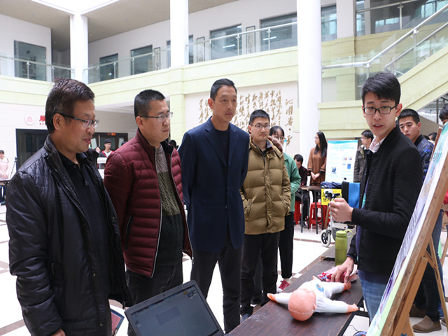 本次遴选活动为学院参赛作品提供了一个展示平台,为择优推荐项目参加2017年举行的第十三届福建省“挑战杯”大学生课外学术科技作品竞赛做准备。活动现场,参赛团队们为我们带来了精彩的作品展示,其中“ET-boy”队的“基于蓝牙控制的智能锁帖”中通过钥匙传动机构来带动钥匙转动进而实现智能开门和通过手机发送指令智能锁语音提醒用户避免丢三落四得到评委老师们的好评。参赛选手们所做的科技作品功能五花八门,评委老师们分别针对选手作品中存在的问题提出进一步的改进意见。