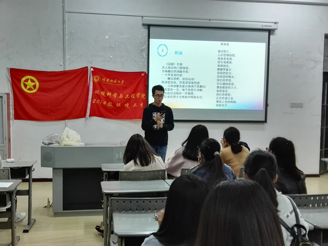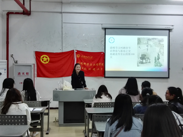 4月4日,环境科学与工程学院2014级环境工程团支部在笃行楼道德讲堂举办了“我们的节日·清明节”主题活动。在此次活动中,支部成员们通过缅怀烈士,了解节日习俗来传承中华民族传统节日。