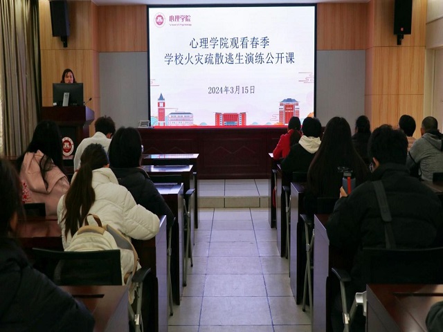 为了提高同学们的安全意识,增强其疏散逃生技能,3月15日,心理学院组织部分师生于人文楼1-102观看2024年春季学校火灾疏散逃生演练公开课。此次公开课由国家消防救援局与教育部联合举办。