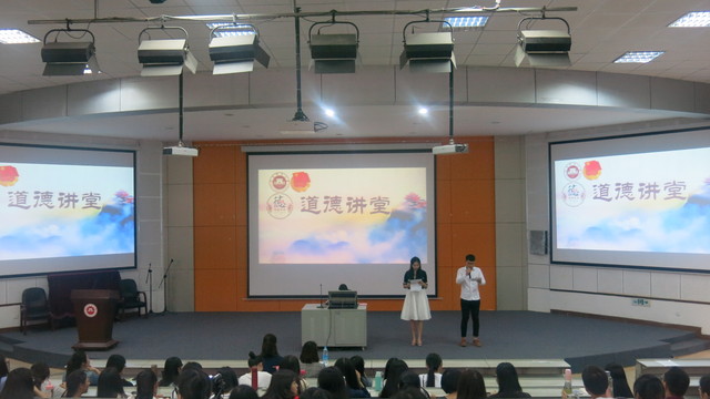 本次活动分为六个环节。唱一首歌,师生共唱《福建师范大学校歌》,唱响“知明行笃、立诚致广”的校训,师生们共聚一堂,激情饱满,奏响青春的乐章,为接下来精彩的道德讲堂拉开了序幕。看一部短片观看中国国家科学技术奖获得者赵忠贤先生的采访视频,聆听他半个世纪的超导生活,感,受这位领军物理学家的科研生涯以及突出贡献,激发了同学们脚踏实地、埋头苦干、追求梦想的决心。讲一个故事,本次道德讲堂邀请到了学院2016年研究生国家奖学金获得者欧阳含笑学姐为在场的同学分享她的科研道路,其中涉及到论文的撰写、学术研究的心得,从选题、收集材料、撰写论文、到投稿,欧阳含笑学姐都一一做了详细讲解,使同学们对论文撰写有了更深刻的了解。接下来,辅导员苏炎奎老师为同学们做了发人深省的讲话,建议同学们合理规划好研究生生活,抓紧时间钻研学术,并鼓励同学们继续攀登科研高峰,使同学们充满信心、斗志昂扬、积极迎接未来。做一个承诺,同学们在主持人的带领下,字句铿锵,斗志昂扬,共同做出“遵守学术道德,保护知识产权”的承诺。诵一番经典,学生代表吟诵《治学》,用文字之美,情感之美,诠释“格物致知,严谨自律”的内涵。最后一个环节,主持人公布在微博上分享“文史哲”相关书籍与书评的获奖同学,并上台领奖,英语笔译班周婷婷同学分享了自己的读书经历,使大家收获颇丰。