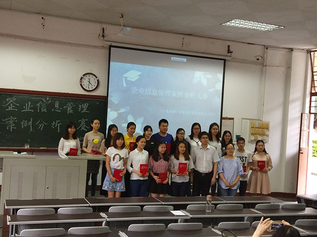 5月13日下午,由社会历史学院信息管理系主办,作为福建省创新创业教育改革试点项目活动之一的企业信息管理案例分析大赛在文科楼104教室圆满落幕。本次比赛邀请我院信息管理系主任孟雪梅老师、钟跃康老师、肖向华老师和林泽婓老师担任评委。