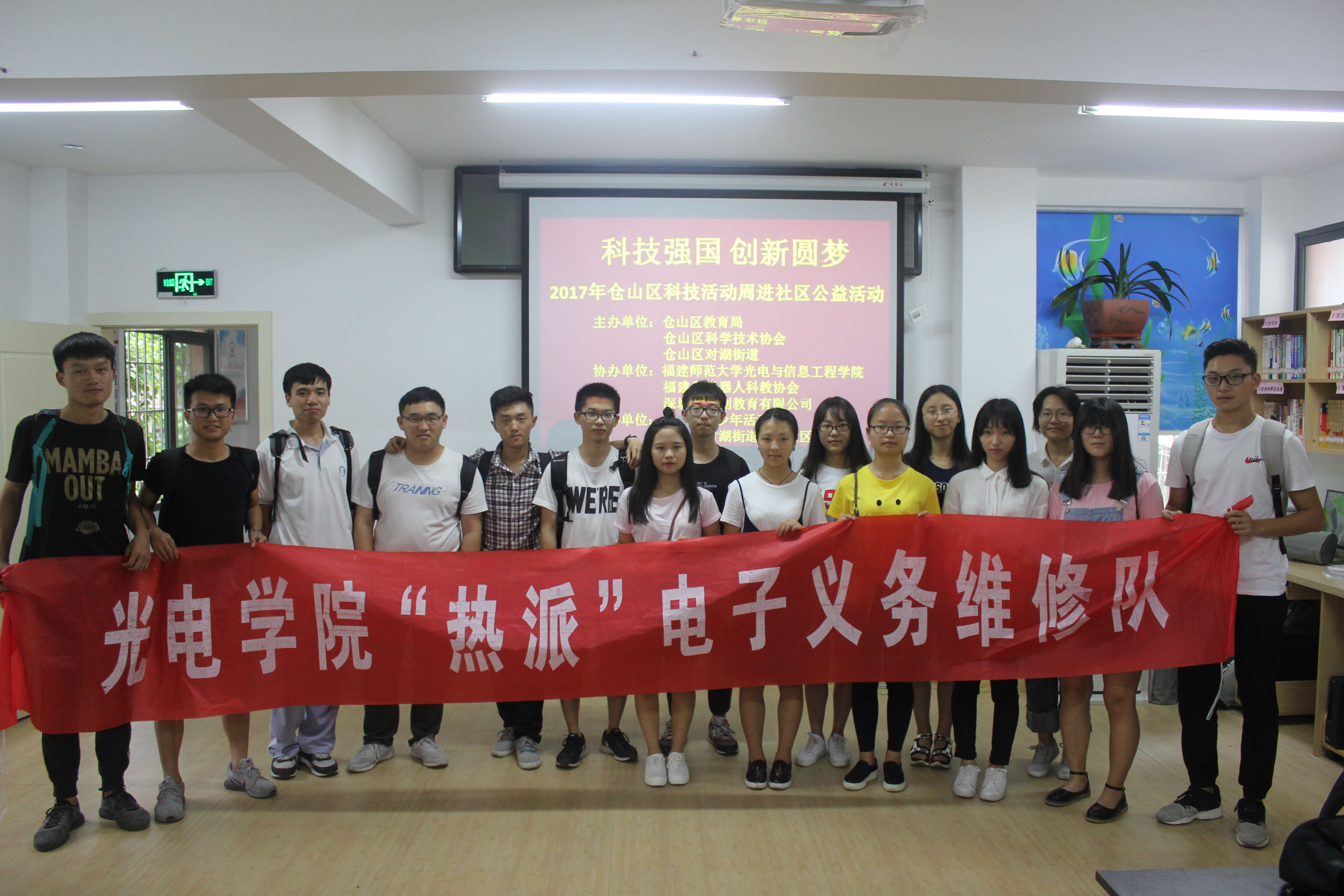 本次仓山区科技节活动周内容丰富,光电与信息工程学院学子充分发挥自身才能,将理论与实践有机结合,激发了到场青少年对科技创新的兴趣,也为社区民众提供了便利的服务。